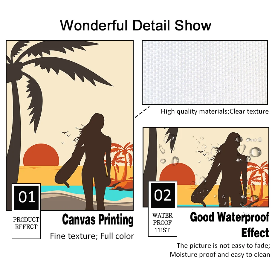 Кокосовая пальма Пляж Морская Черепаха девушка настенная Картина на...