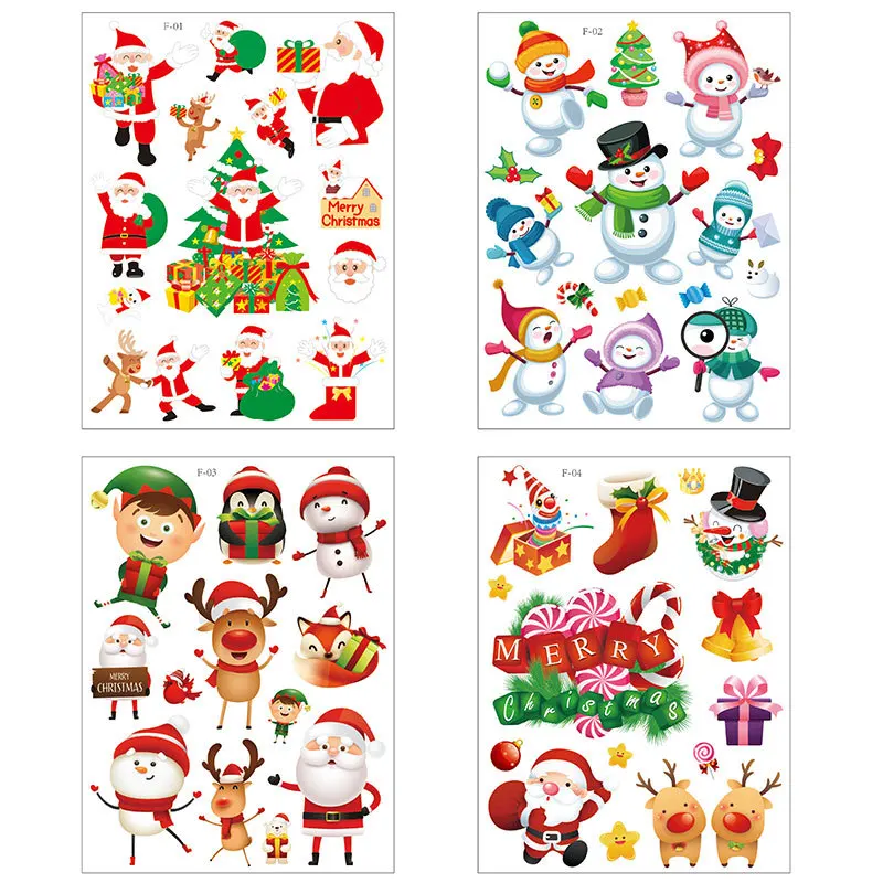 Наклейка для фотографий Санта-Клауса, Рождественская наклейка из ПВХ с статическим эффектом, украшение домашнего окна, большая наклейка со снегом, наклейка на новый год, для вечеринки, стеклянное платье