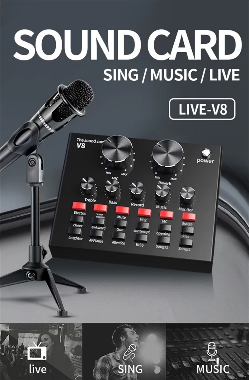 Студийный аккумулятор BM 800 со звуковой картой V8 BM800, профессиональный конденсаторный микрофон для компьютерной записи, Подкаст, TikTok