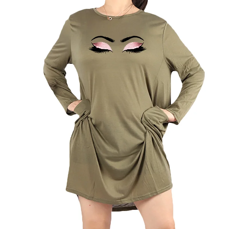 Платье-футболка женское средней длины с принтом в виде ресниц