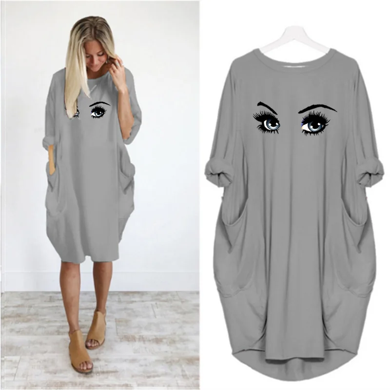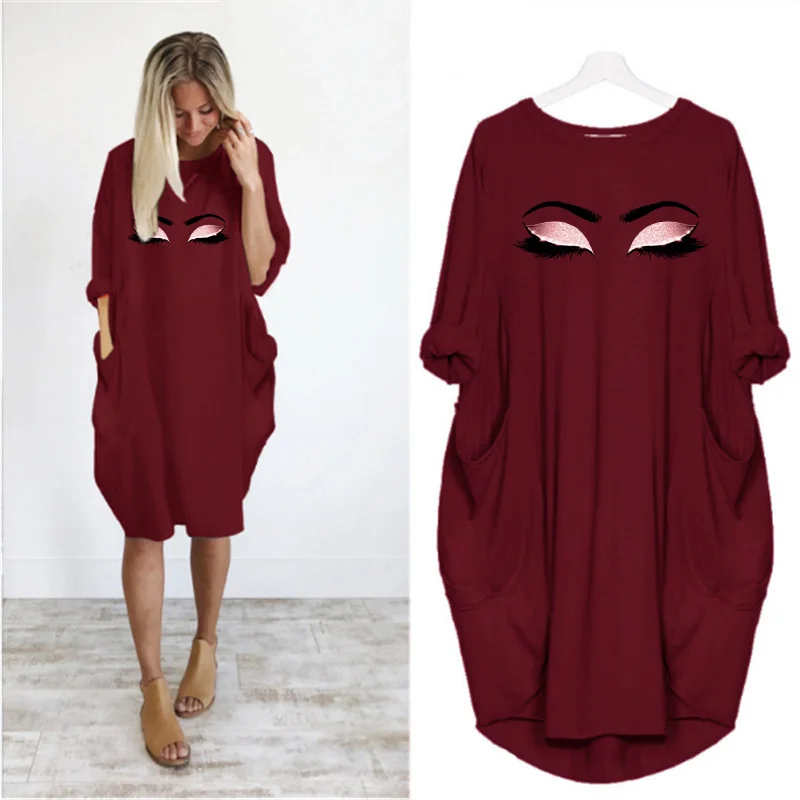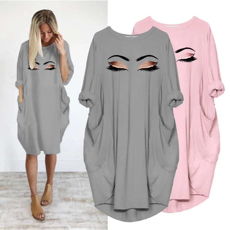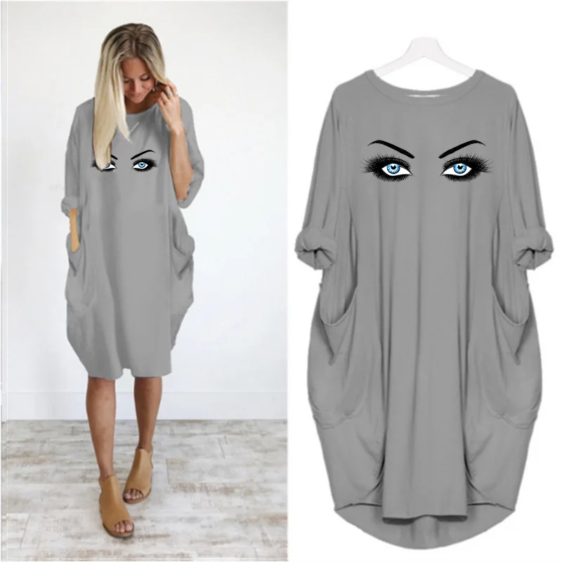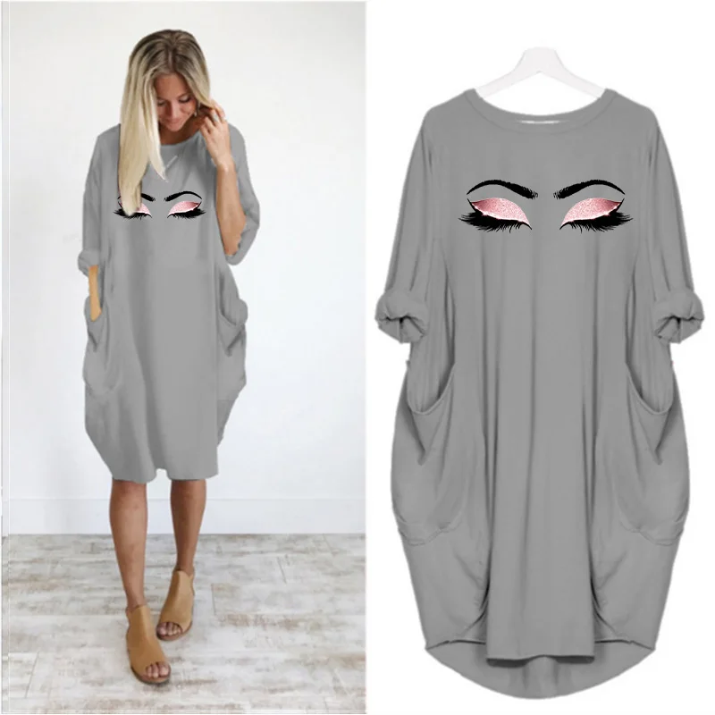 Платье с принтом ресниц Harajuku для макияжа размера плюс, платья-футболки Vogue, женское платье миди с коротким рукавом, вечерние платья для клуба!