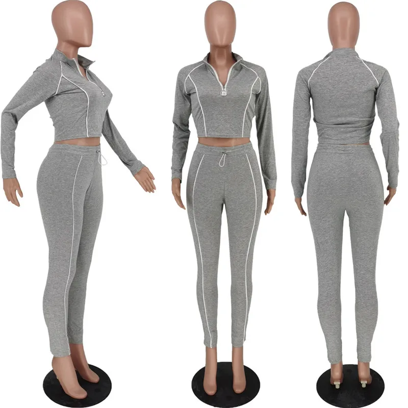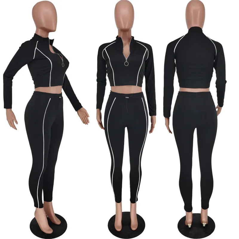 Осенний Женский комплект из 2 предметов, топ на молнии, брюки с эластичным поясом, эластичный облегающий наряд, комплект для бега, лучший оптовая продажа, Прямая поставка