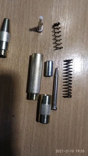Не поверите, но когда я получил этот кернер, вначале я подумал, что он поломан ) Вначале я долго искал кнопку. Думал, что он как-то заряжается, а потом прикладываешь и нажимаешь на кнопку. Потом я его разобрал, но так и не понял принцип работы. После этого я пошел на Ютуб и только после этого понял насколько я тупой! )) Оказывается его достаточно прижать к поверхности и при определённом усилии срабатывает пружина, которая и делает удар. Штука удобная. Алюминий бъет классно. металл не проверял. По ощущениям, как удар штапичным молотком. В любом случае НАМНОГО УДОБНЕЕ КЕРНИТЬ ОДНОЙ РУКОЙ! Например, на высоте.