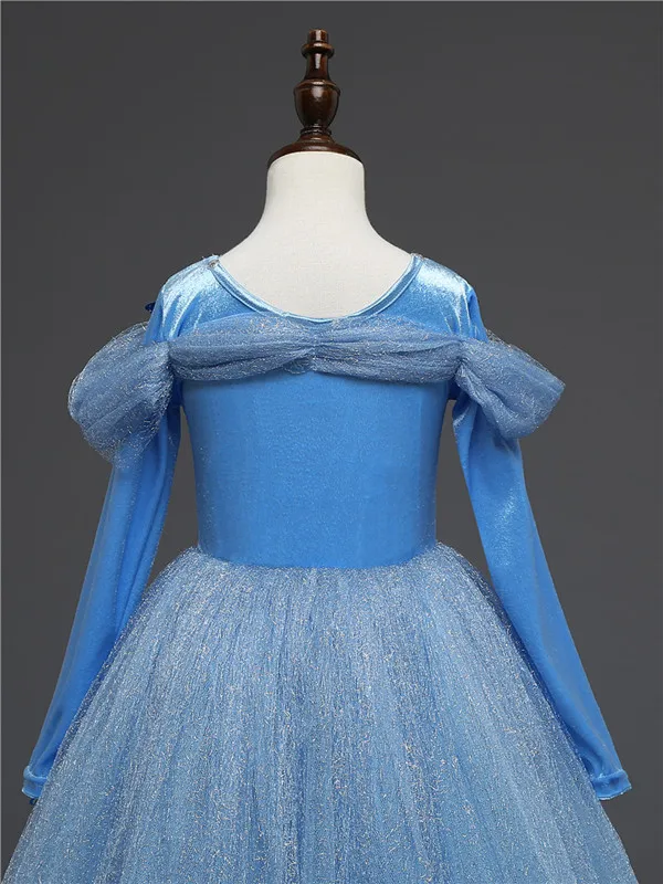 Детское фатиновое платье с длинным рукавом, голубое платье с цветоч...