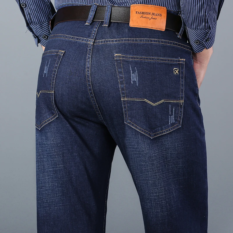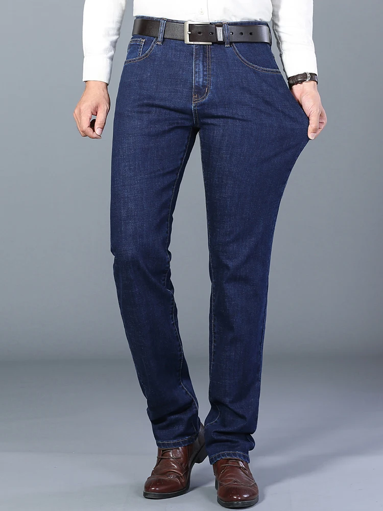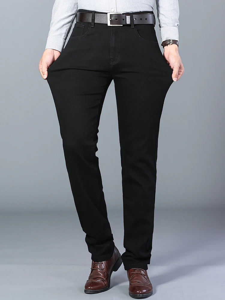 Мужские классические прямые джинсы, хлопковые Стрейчевые брюки синегочерного цвета, для осени и зимы