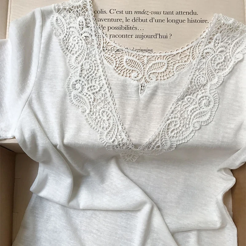 Футболка женская кружевная в стиле пэчворк, пикантная элегантная шикарная рубашка с коротким рукавом и открытой спиной, винтажная повседневная одежда, лето 2021