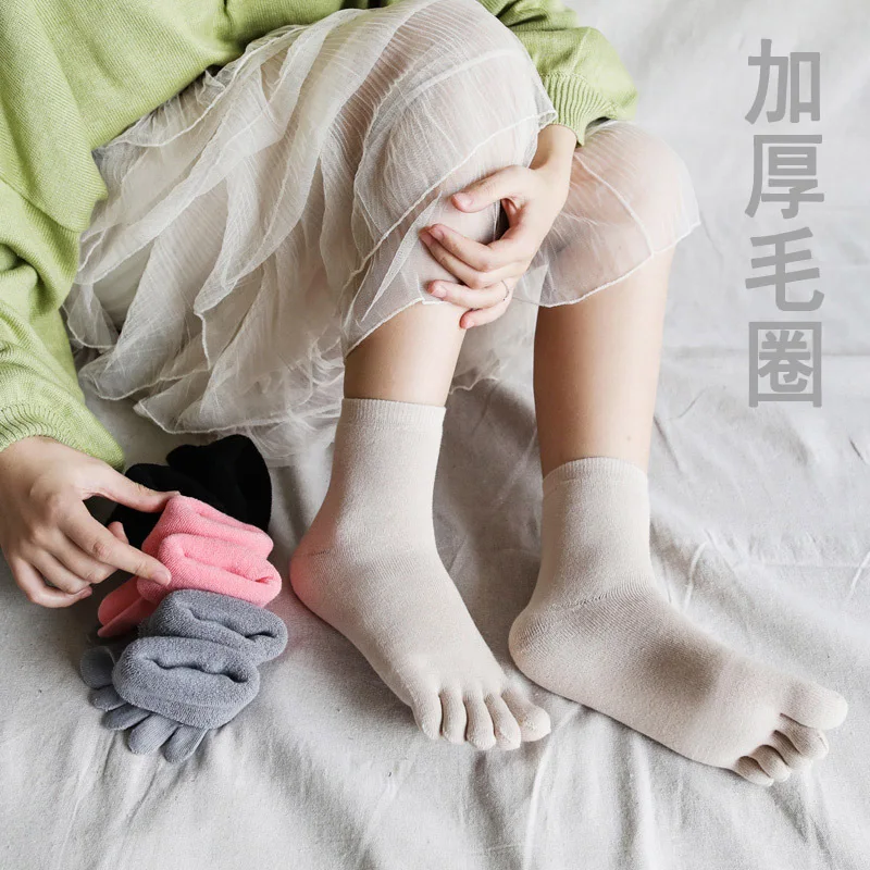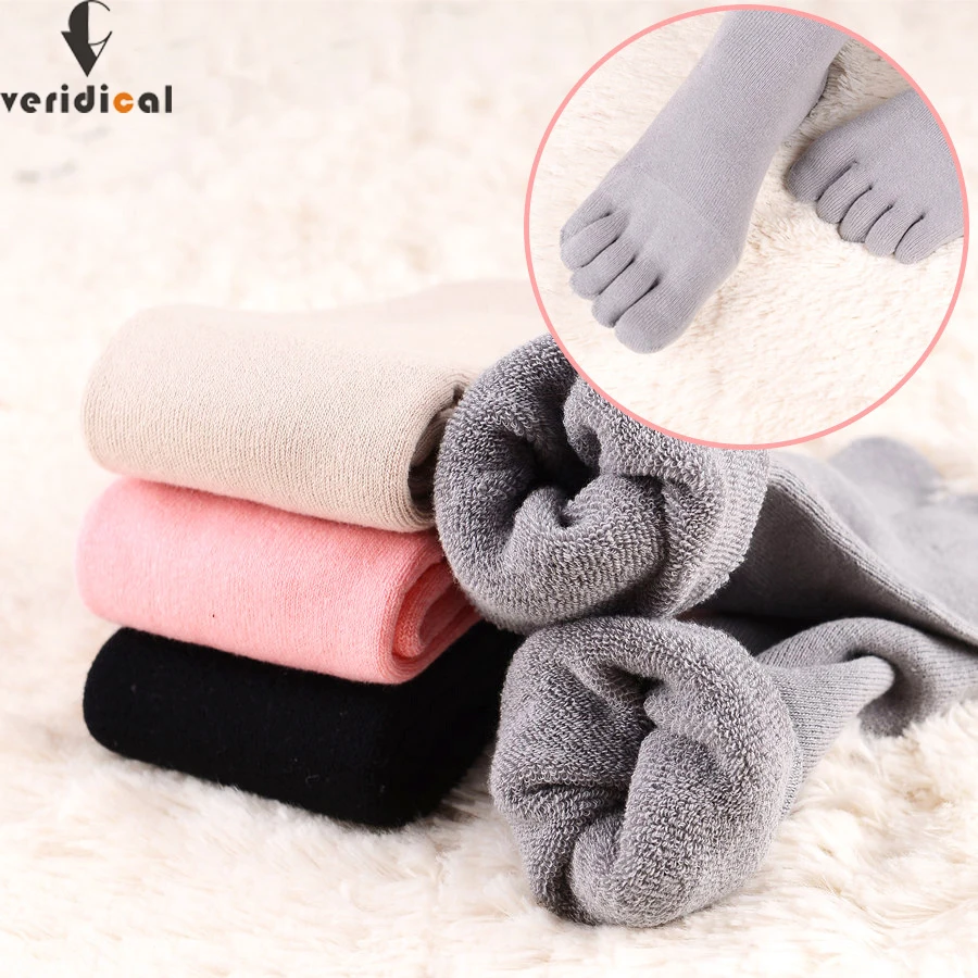 VERIDICAL 5 пар лот, толстые носки с 5 пальцами, женские однотонные хлопковые зимние термо-махровые носки, брендовые носки Harajuku без костей с пальцами