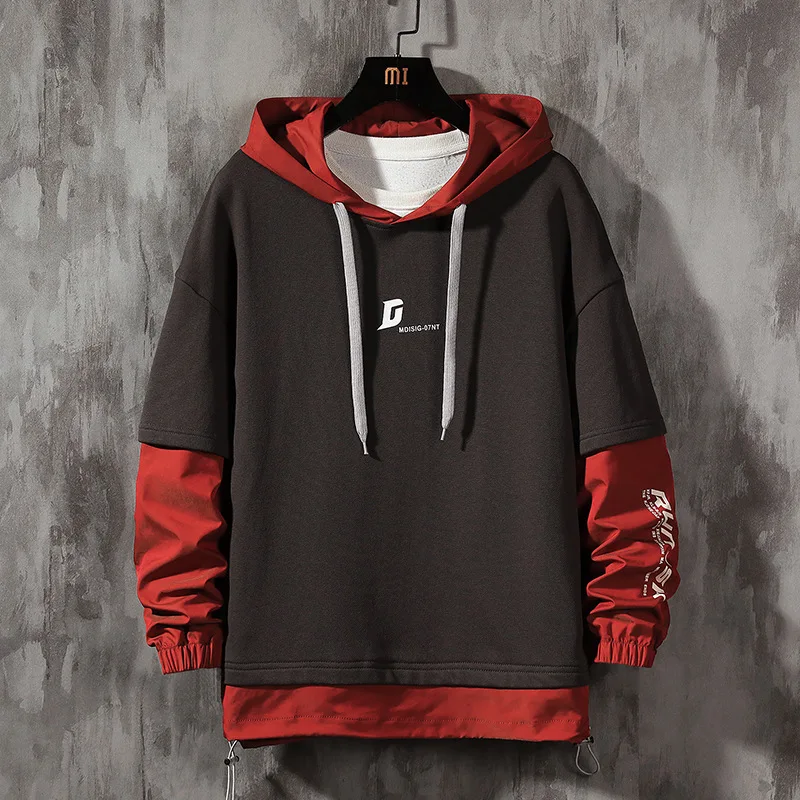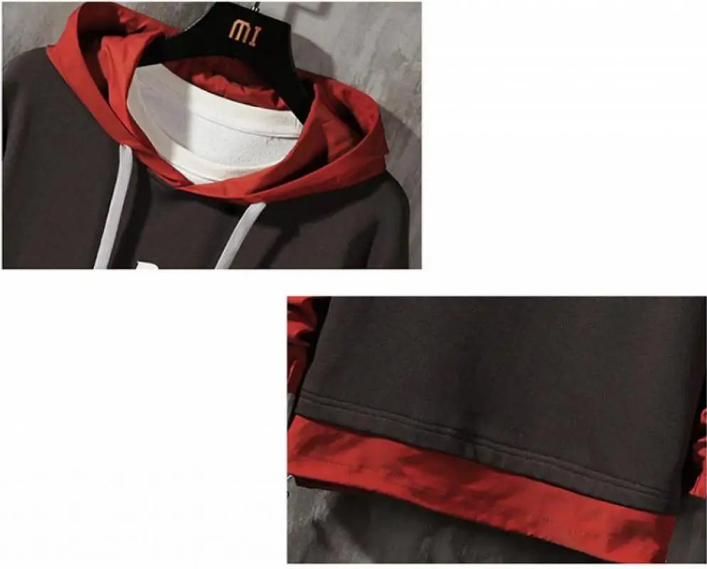 В стиле хип-хоп пуловер красного и черного цветов с капюшоном Мужские толстовки Цвет 2021 осень уличная Толстовка XXXXL блок с капюшоном в стиле пэчворк мужской свитер