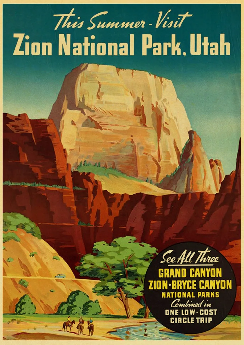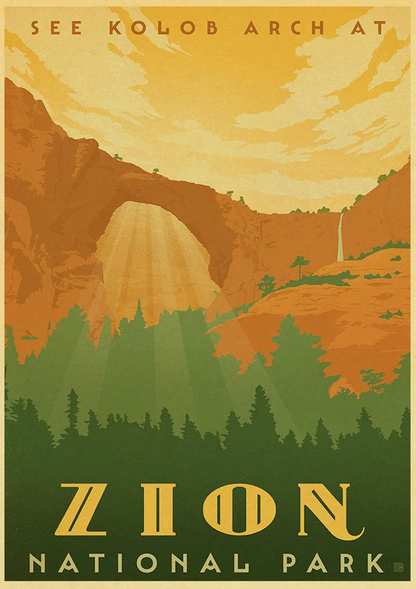 Винтажные пейзажи в национальном парке, ретро плакаты и принты, настенные наклейки, печать на крафт-бумаге, искусство для домашнего декора комнаты, живопись