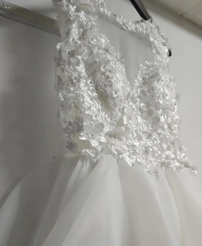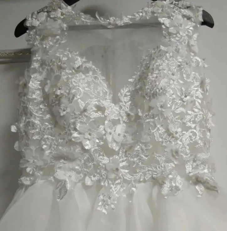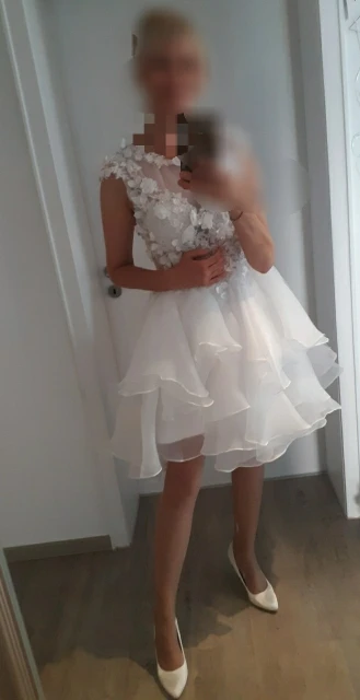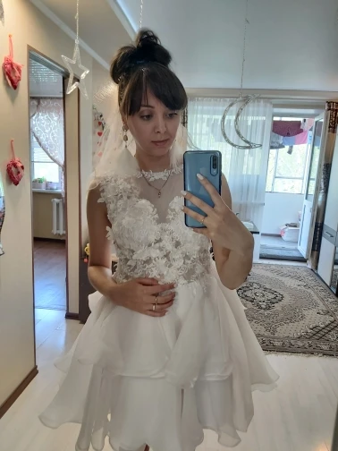 Платье (у меня белый цвет), точь в точь, как на картинке!!! И спереди, и сзади! Красота! Почти не помялось. Продавец задерживал отправку дней 10. Заказывала размер из таблицы, а не личные замеры. Заказ пришел в Германию за две недели. Спасибо.Удивлена! Слои пышные, внизу подъюпник, кружева с бисером, глубокий замок, сверху пять пуговиц, самой не застегнуть, нужна помощь, всё один в один с картинки. Теперь минусы :( Размер из таблицы на "6" ПО ОПИСАНИЮ подошёл один в один. На деле, отдала ушивать около 6 см в боках по шву. Самый верхний слой сильно утяжеляет бедра и фигуру (на мой вкус), я его тоже отпорю. Мой рост 173 см, вес 55, размер 36, это платье почти закрывает колени. С каблуком 9 см смотрится хорошо. Но я впереди всё-равно буду укорачивать на 5 см., так оно легче смотрится. Девочки ниже 170 см платье вам будет не так, как на фото, а возможно длиннее. Работа у швеи стоит столько же сколько и платье, но всё-равно о заказе не жалею. Когда будет готово, прикреплю фото.