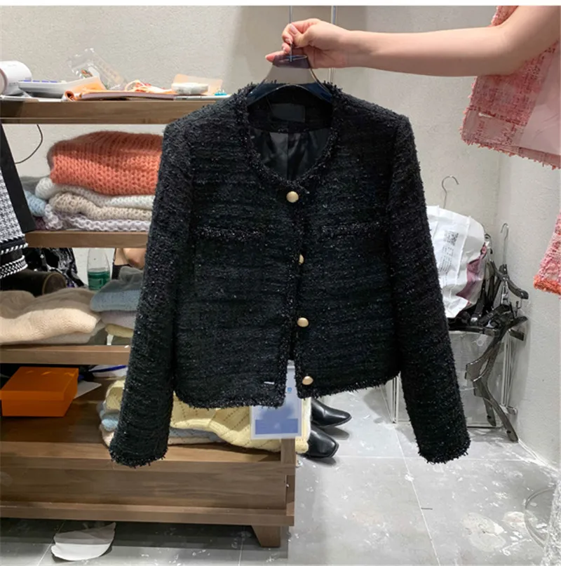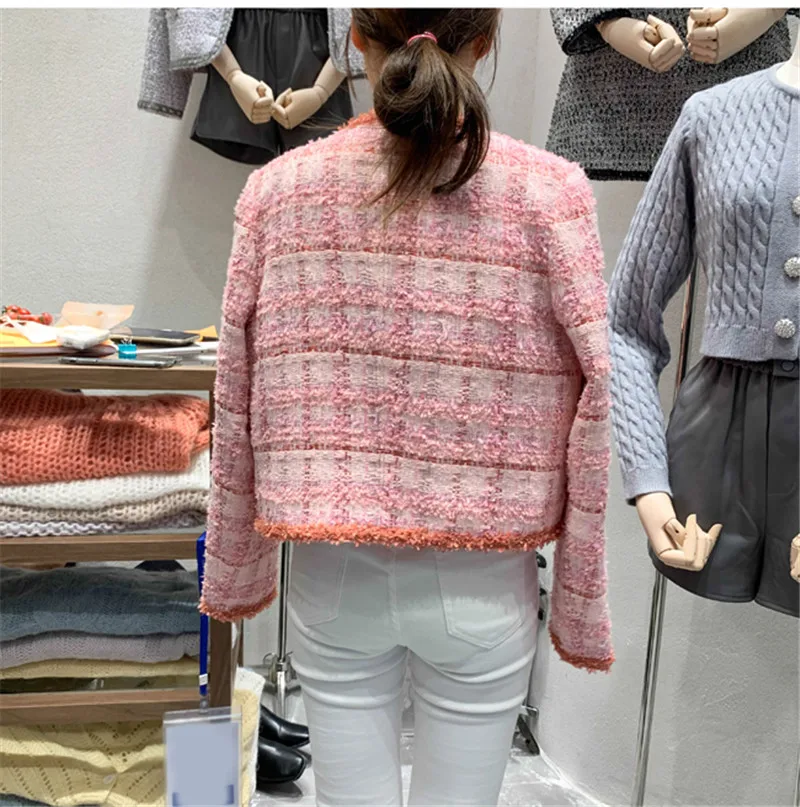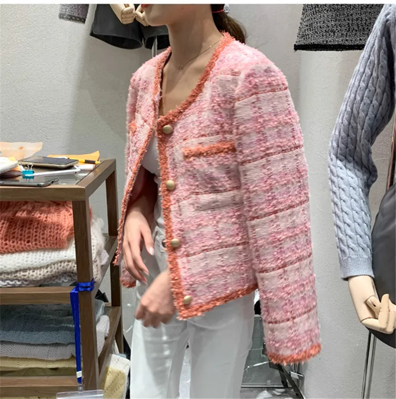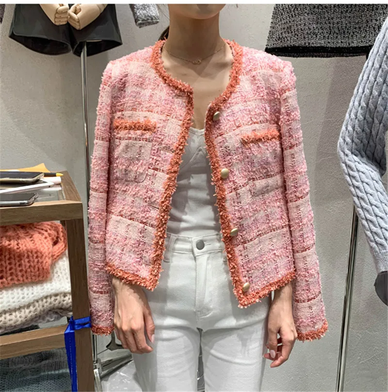 Женская короткая твидовая куртка, черный, белый, розовый кардиган с одной грудью, элегантная винтажная верхняя одежда, осень-зима