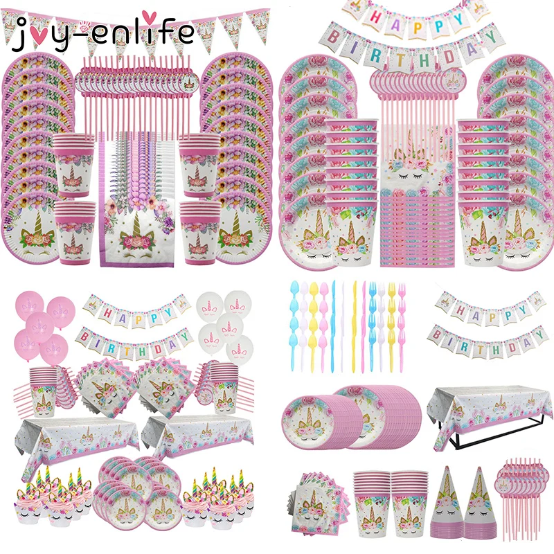 Набор одноразовой бумажной посуды, украшение для детского праздника на 1-й день рождения, единорог, салфетка под тарелку кружку