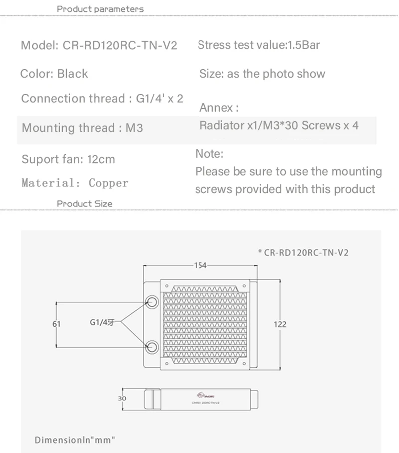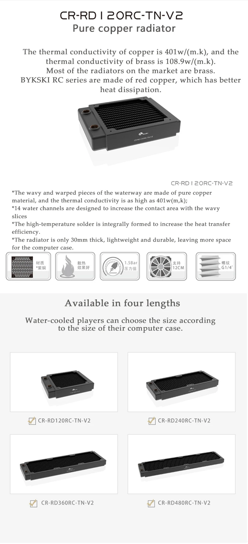 Охлаждение ПК Bykski CR-RD120240360480RC-TN-V2, G14, медный радиато...