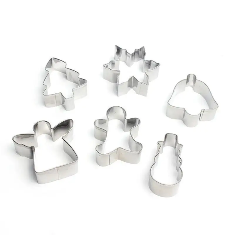Набор из 6 штук для резки печенья, специально для рождества, пряников, рождественской елки, снеговика, снежинки, ангела, колокольчика.