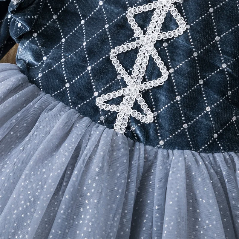 Рождественское платье для девочек, Сетчатое платье принцессы с блес...