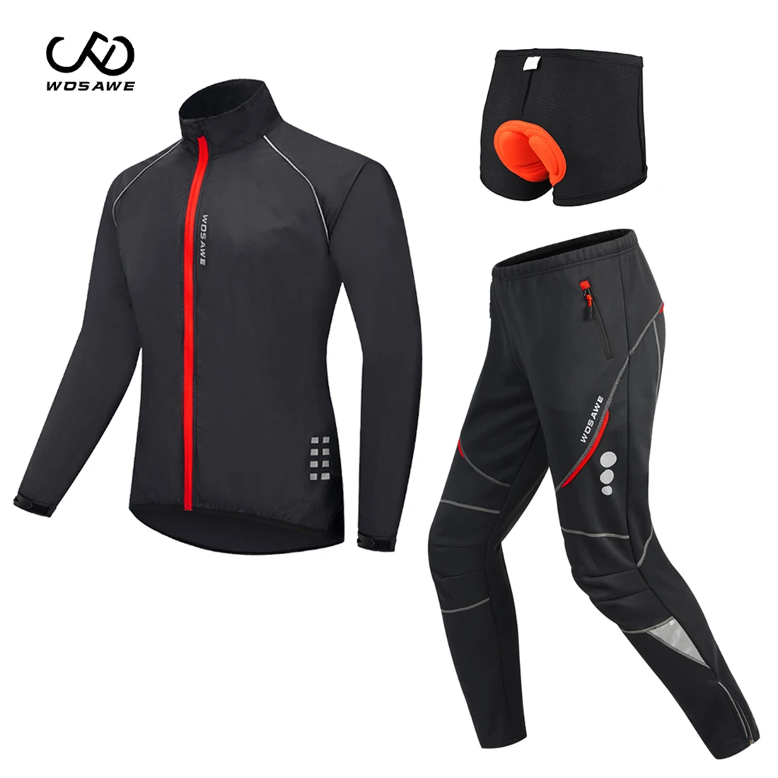 Мужской комплект одежды для велоспорта WOSAWE, утепленная флисовая куртка и брюки, комплект одежды для велоспорта