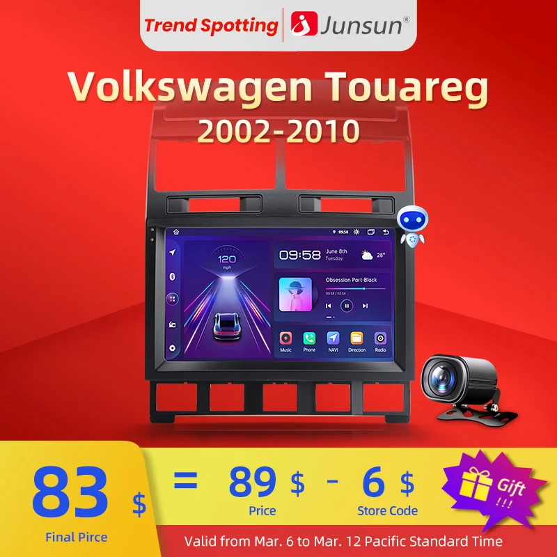Junsun V1pro AI Voice 2din магнитола андроид for Volkswagen Touareg 2002-2010 автомагнитола Аудио для авто GPS Track Carplay 2din dvd