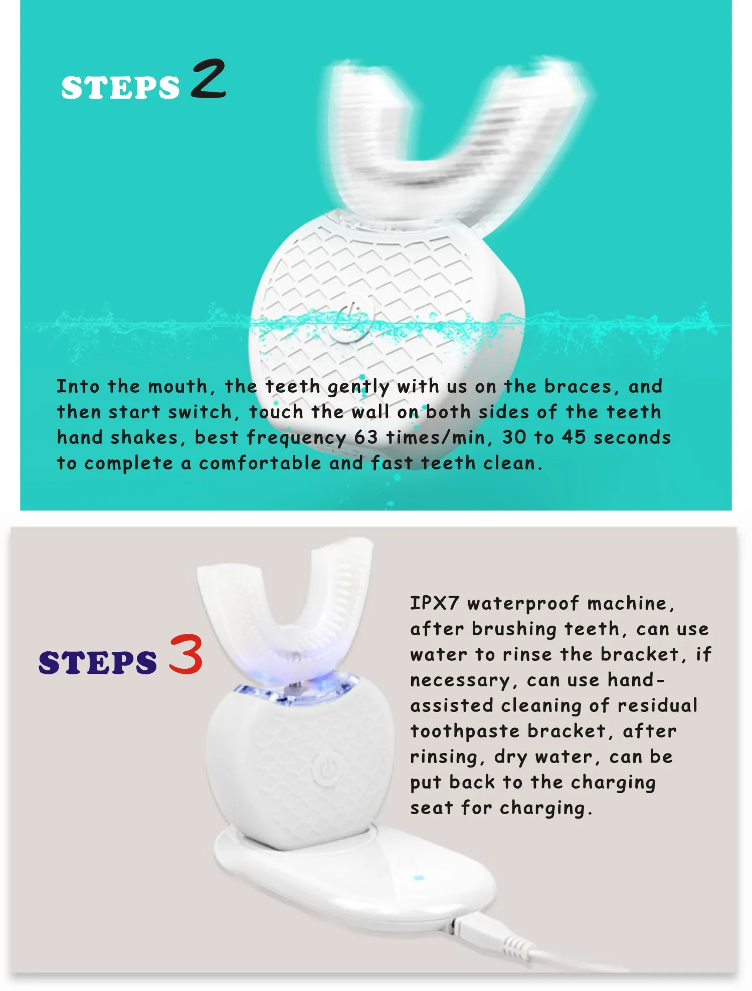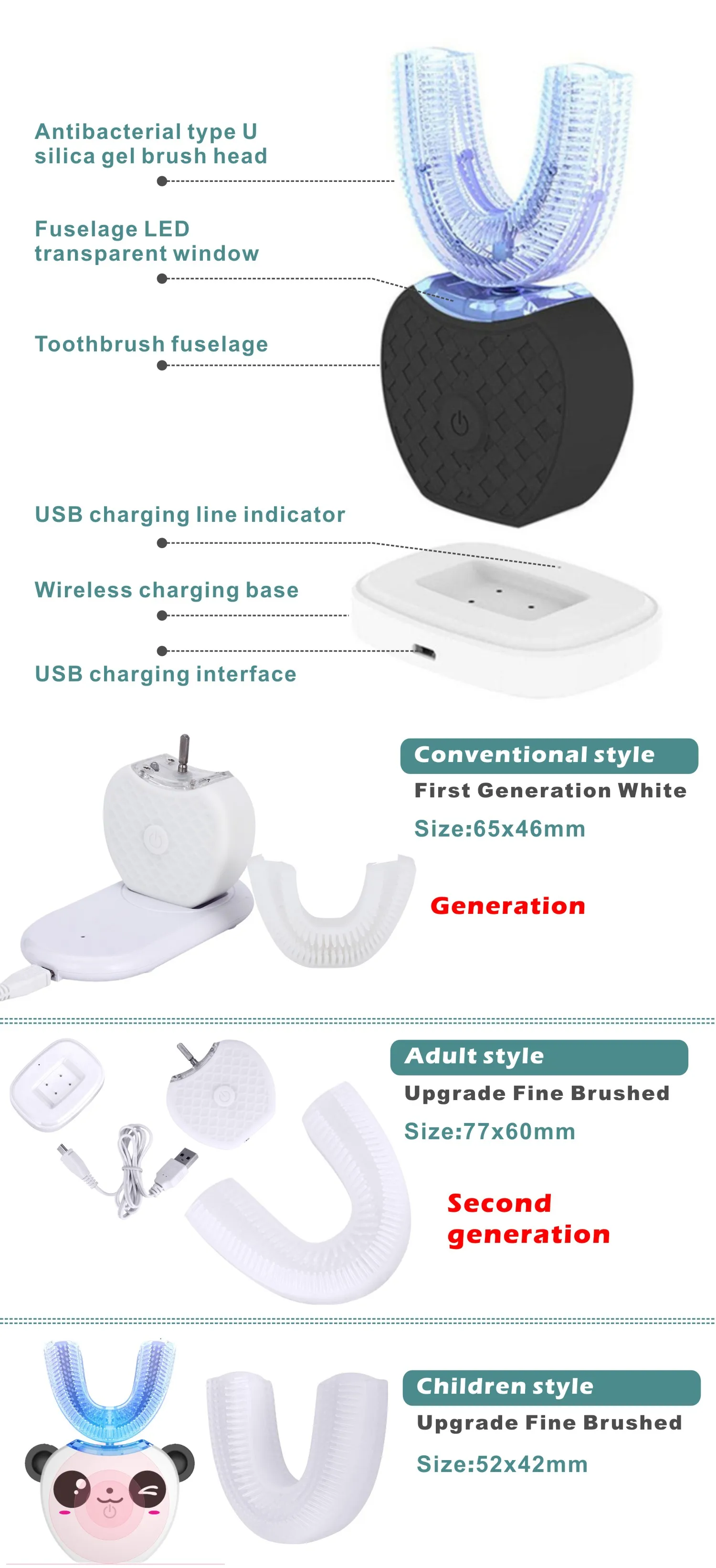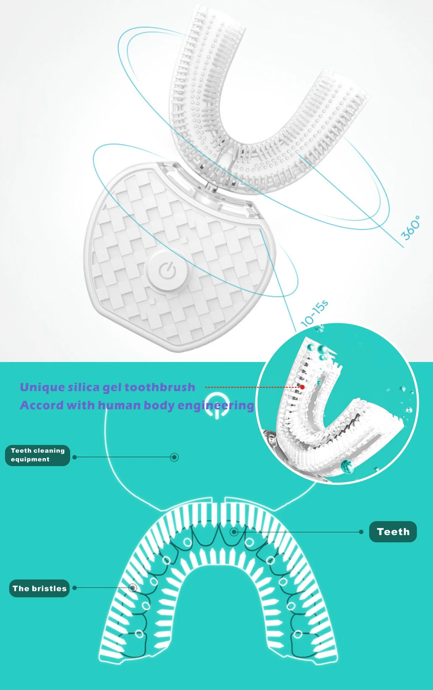 U-образный дизайн одного мундштука, так что вы чистите зубы, чтобы освободить руки, улучшить эффективность вашей жизни.