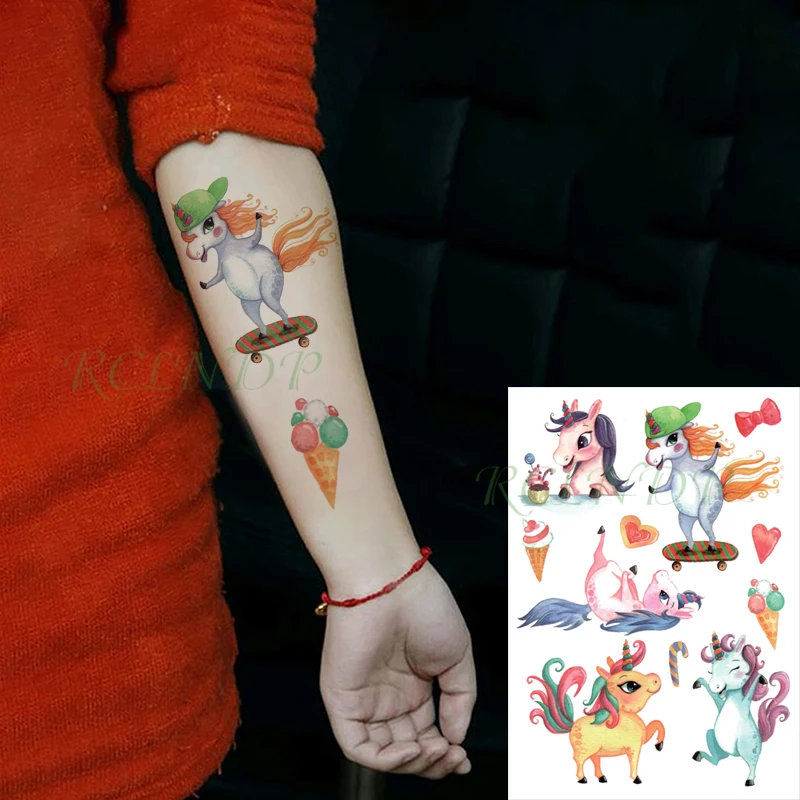 Водостойкая временная татуировка-наклейка, мультяшный единорог, милое мороженое, бант, сердце, флэш-тату, поддельные татуировки для детей, мужчин, женщин