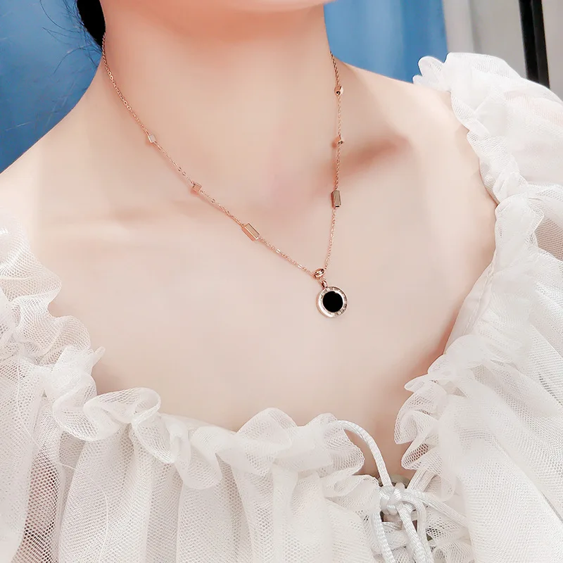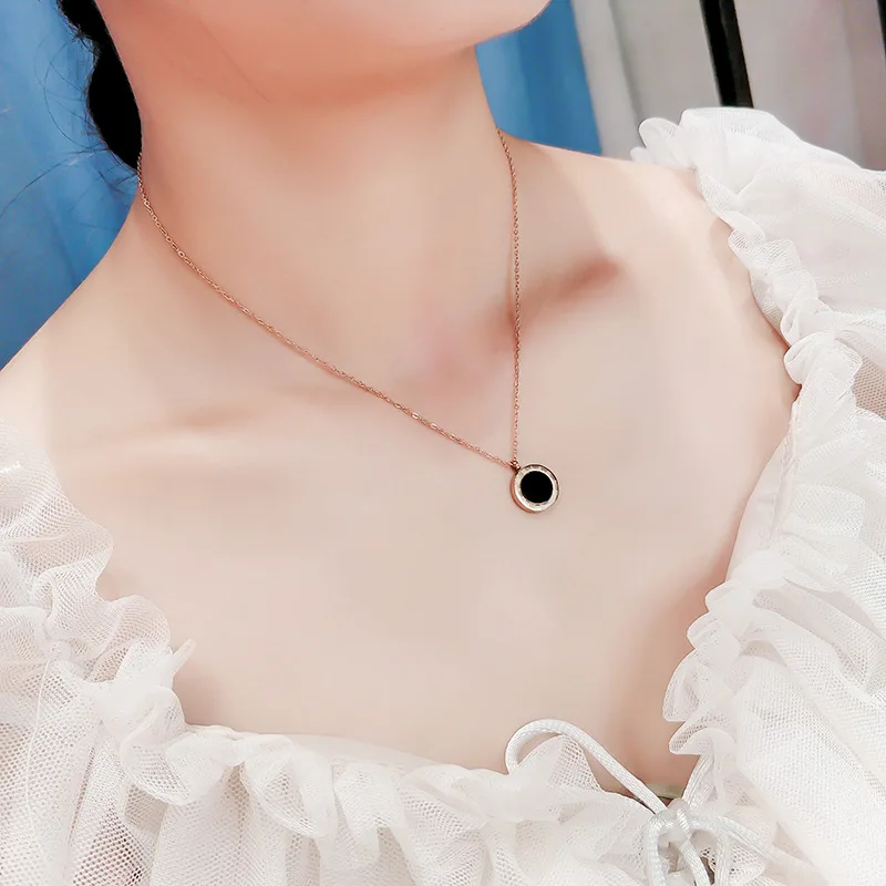 Женское Ожерелье из титановой стали, простое двухстороннее черно-белое ожерелье до ключицы, подарочное Ювелирное Украшение, 2020
