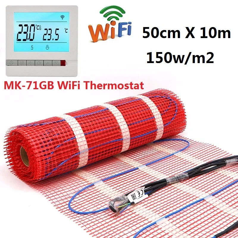 50cmX10m теплый напольный нагревательный коврик 150 Вткв. М с WiFi APP контролируемый Термостат можно выбрать