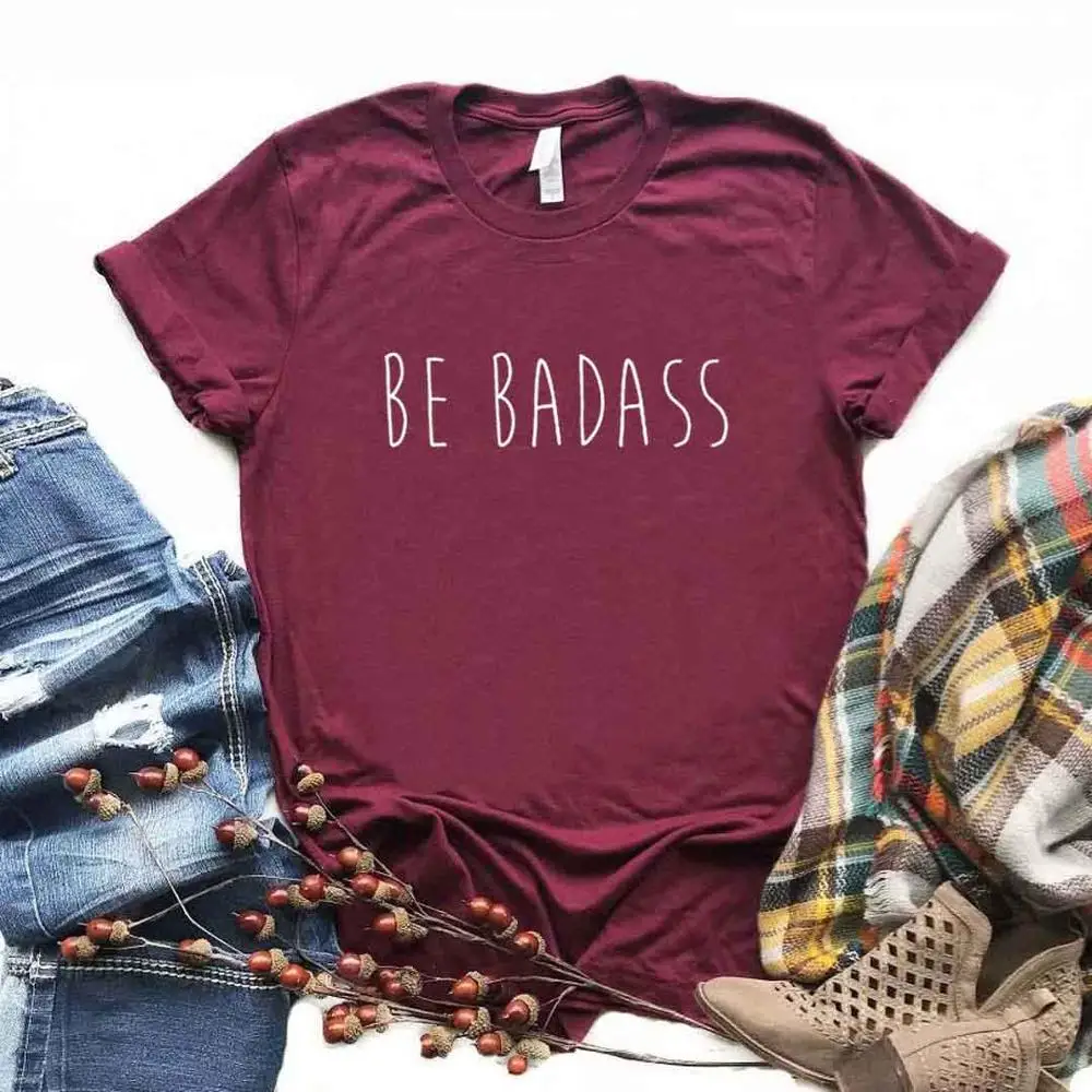 Женская хлопковая Футболка с принтом Be badass, повседневная забавная футболка для девушек Yong, хипстерский Топ, 6 цветов, Прямая поставка, FS-5
