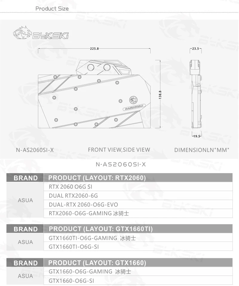 Блок водяного охлаждения BYKSKI Gpu для ASUA RTX 2060 O6G SIDUAL RTX2060-6GDUAL RTX2060-O6G-EVORTX2060-O6G-GAMING5V 3PIN12V
