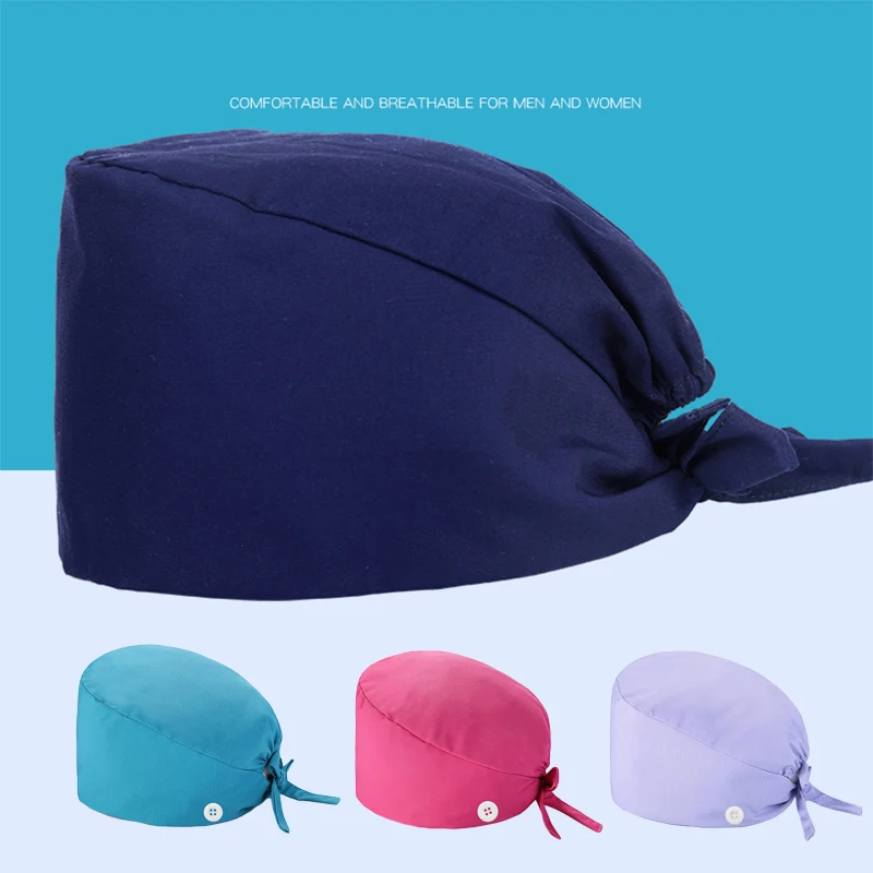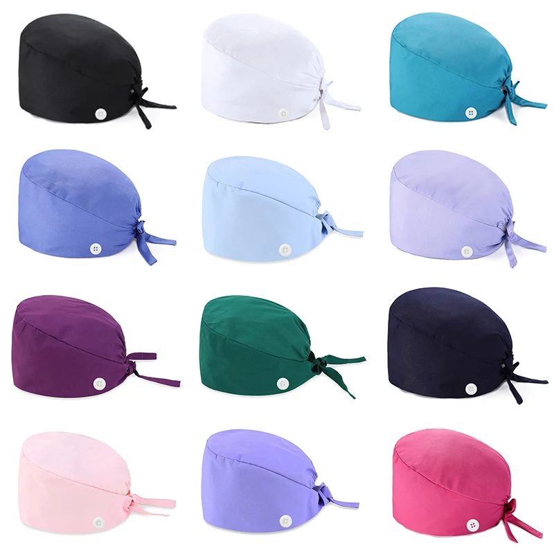 Кепка для салона красоты унисекс, одноцветная Регулируемая шапка с кнопками, для лабораторий, зоомагазинов, медсестер, врачей