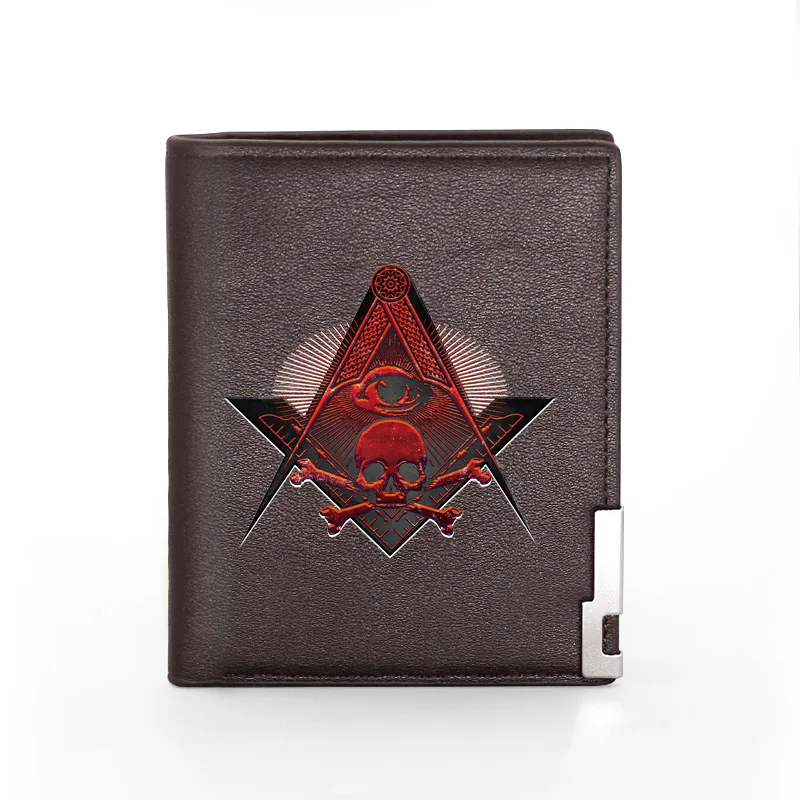 Уникальный классический черный кошелек из искусственной кожи с рисунком масонского черепа, Винтажный Мужской и женский держатель для кредитных карт, короткий кошелек