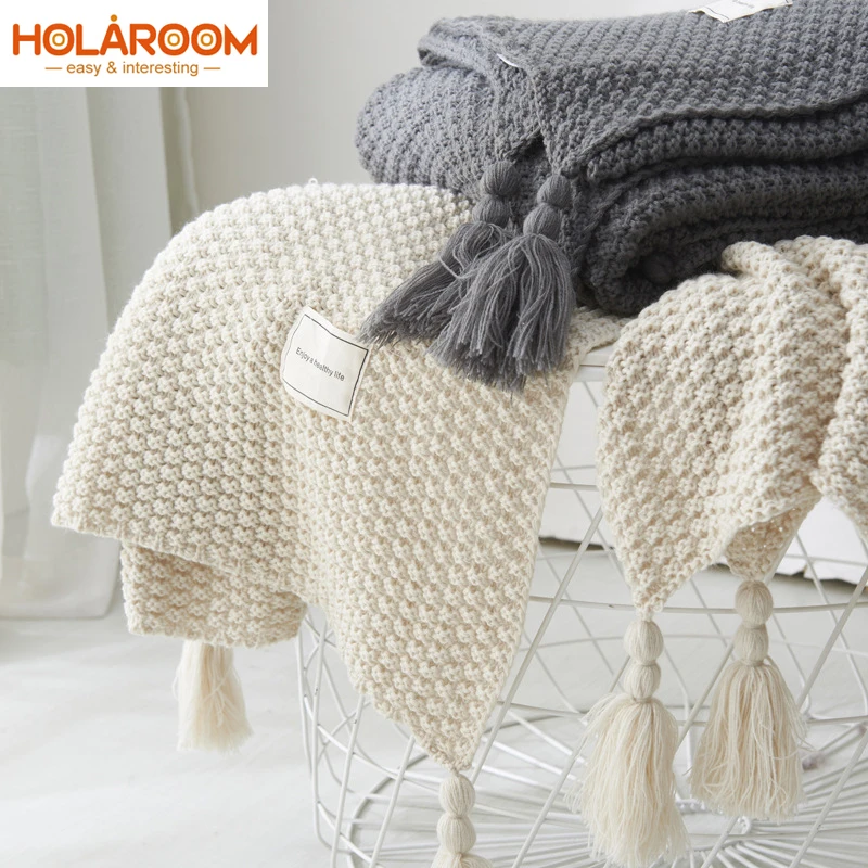 Одеяло с кисточками, однотонное бежевоесерое кофейное плед для спальни, дивана, домашний текстиль, модная накидка, вязаное одеяло