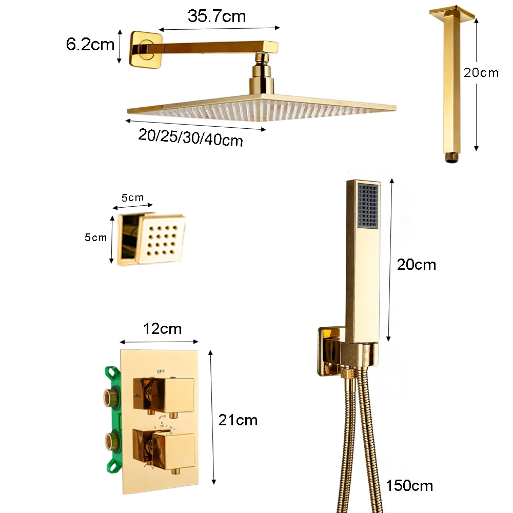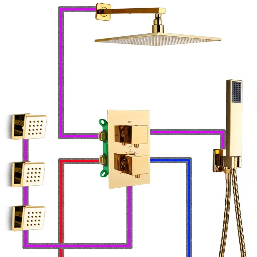 Термостатический смеситель для душа, золотистый скрытый Встраиваемы...