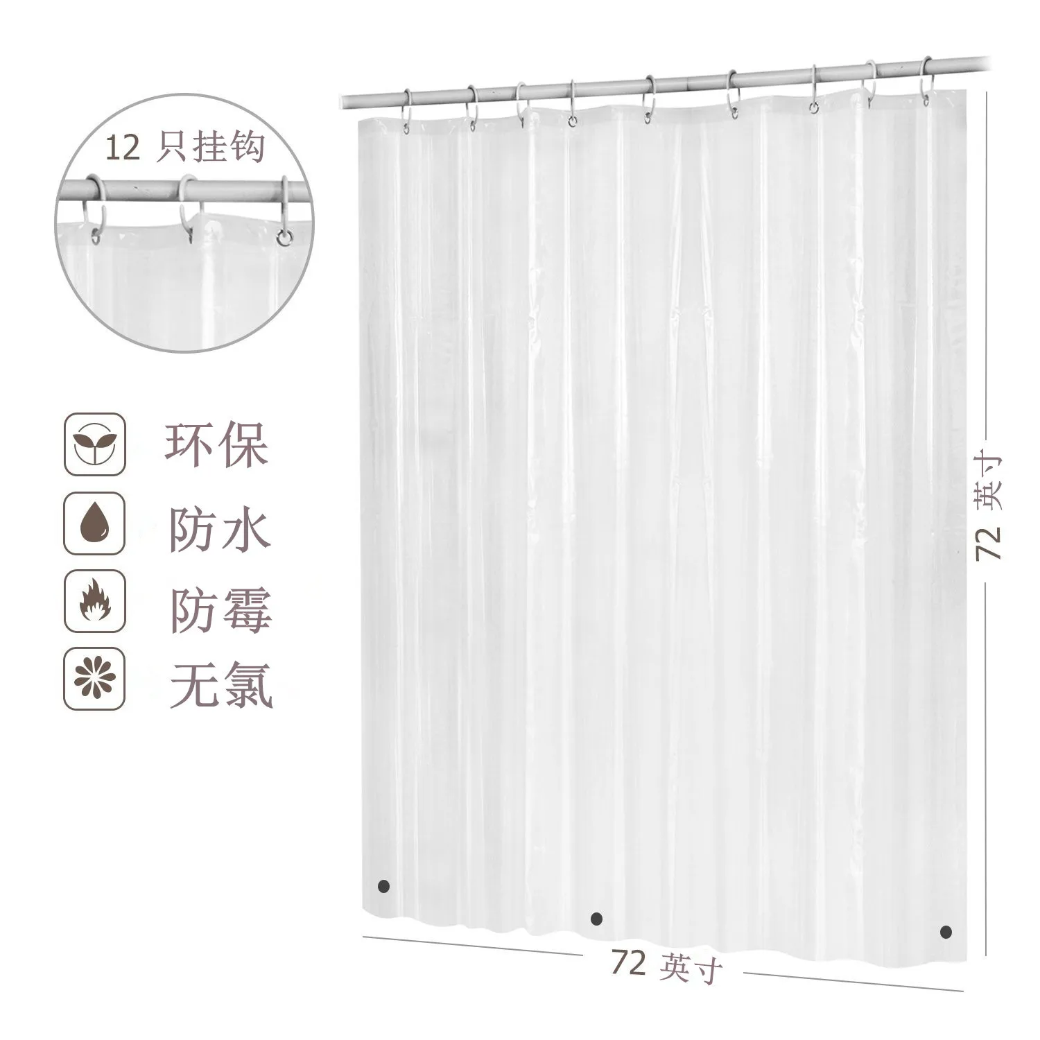 Тяжелая прозрачная душевая занавеска с крючками, устойчивая к плесе...