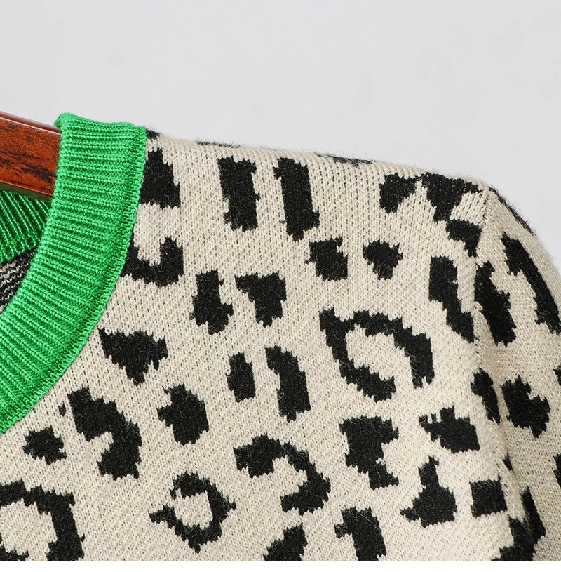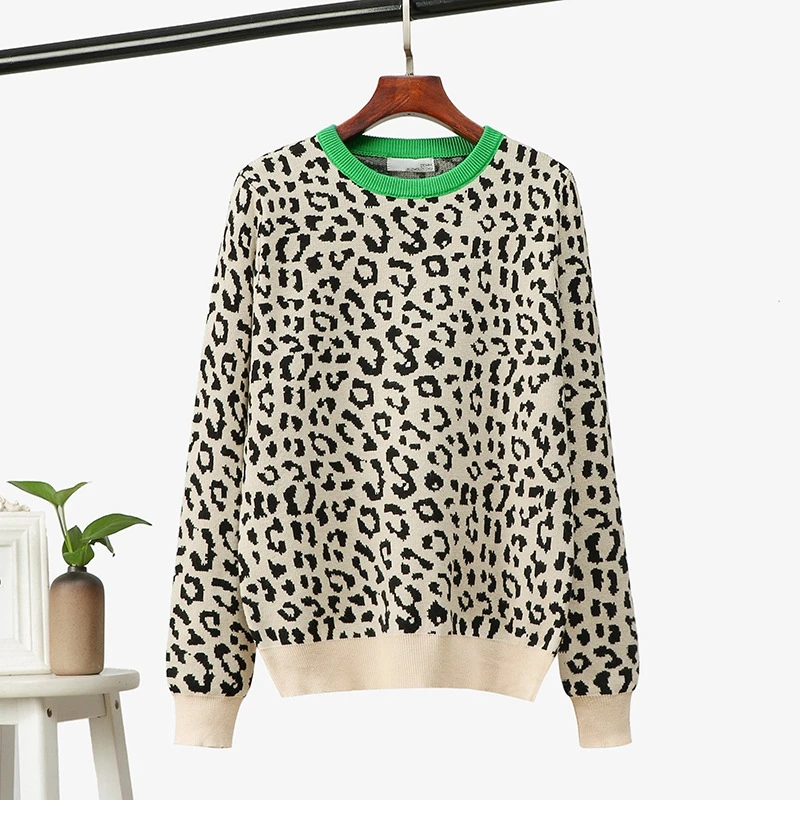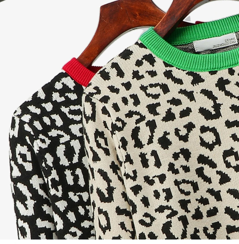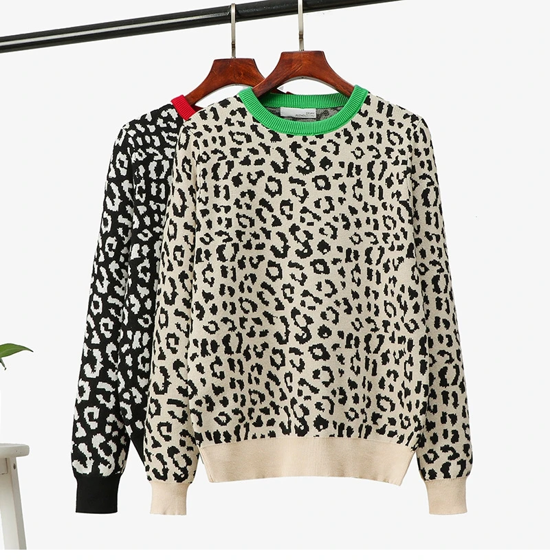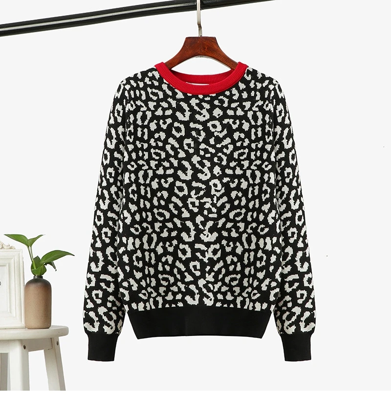 Осенне-зимние женские свитера, вязаные пуловеры с леопардовым принт...