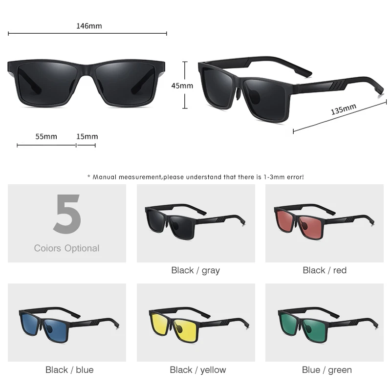 Солнцезащитные очки МужскиеЖенские поляризационные, квадратные алюм...