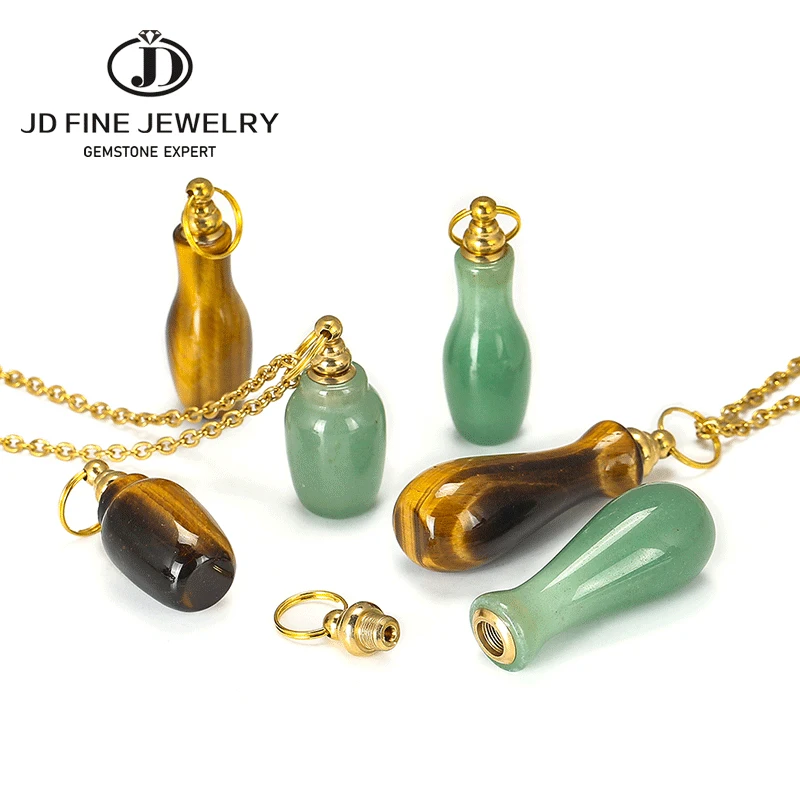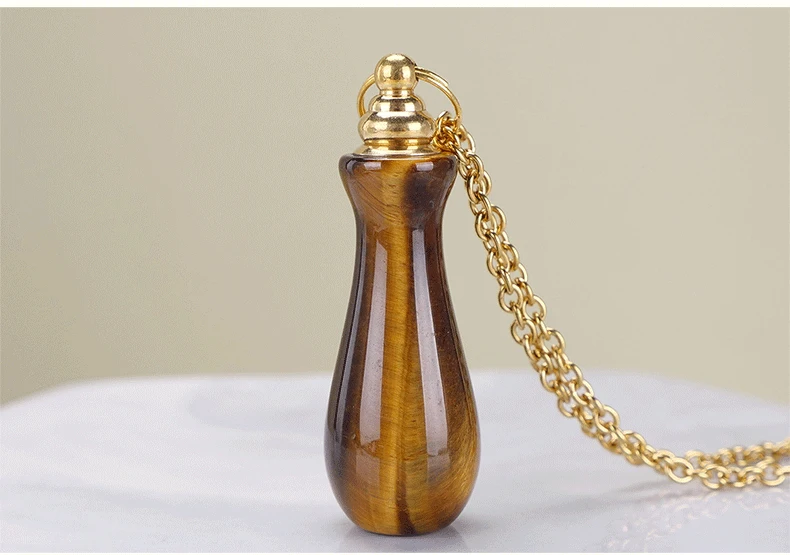 JD натуральный тигровый глаз каменьнефритовый диффузор для эфирного масла подвеска в виде бутылочки парфюма ожерелье 29 дюймов ювелирные изделия из нержавеющей стали прямая поставка