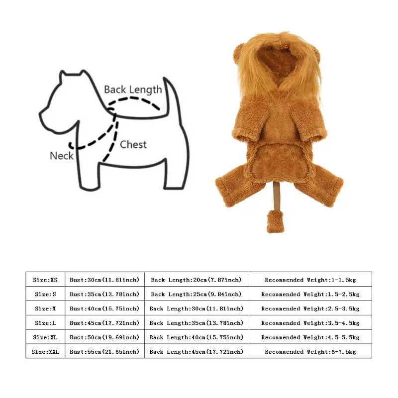 100% новый и высокое качествоOOTDTYОсобенности:Костюм с изображением собаки льва изготовлен из кораллового флиса, гладкого и мягкого, с шапкой и милыми ушками.Одежда с изображением Льва может выдерживать Ежедневное сопротивление от бега, катания, жевания и т. д. в конце концов, этот костюм предназначен для развлечения и не для того, чтобы убить время веселья.Мягкий мех, который носится вокруг лица, делает собаку похожей на льва джунглей в Изяществе и придает им красоту. Ваша собака всегда будет ловцом для глаз.Одежда с изображением Льва для собак идеально подходит для праздников, вечеринок или фестивалей. Обязательный подарок для вашего питомца во время путешествия, вечерние маскарадные или праздничные фотосессии, также сохраняет тепло зимой.Только костюм для домашних животных, другие аксессуары на фото не включены.Спецификация:Материал: коралловый флисРазмер на выбор: XS, S, M, L, XL, XXLРазмеры: XS бюст: 30 см (11,81 дюймов) Задняя Длина: 20 см (7,87 дюймов) рекомендуется Вес: 1-1,5 кгРазмеры: S Бюст: 35 см (13,78 дюймов) Задняя Длина: 25 см (9,84 дюймов) рекомендуется Вес: 1,5-2,5 кгРазмеры: M Бюст: 40 см (15,75 дюймов) Задняя Длина: 30 см (11,81 дюймов) рекомендуется Вес: 2,5-3,5 кгРазмеры: L Бюст: 45 см (17,72 дюймов) Задняя Длина: 35 см (13,78 дюймов) рекомендуется Вес: 3,5-4,5 кгРазмеры: XL Бюст: 50 см (19,69 дюймов) Задняя Длина: 40 см (15,75 дюймов) рекомендуется Вес: 4,5-5,5 кгРазмеры: XXL Бюст: 55 см (21,65 дюймов) Задняя Длина: 45 см (17,72 дюймов) рекомендуется Вес: 6-7,5 кгЦвет: коричневыйКоличество: 1 шт.Примечание:Нет розничной упаковки.Возможны отклонения в 0-1 см вследствие измерений вручную. Пожалуйста, убедитесь, что вы не возражаете, прежде чем сделать ставку.Из-за разницы между различными мониторами изображение может не отражать фактический цвет изделия. Спасибо!Посылка:1 х костюм для домашних животных