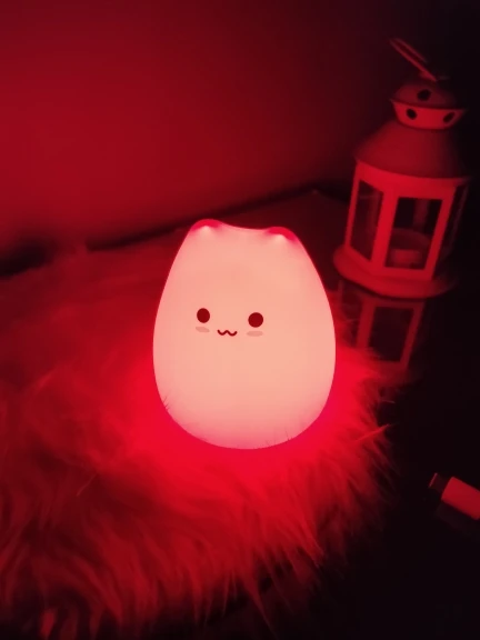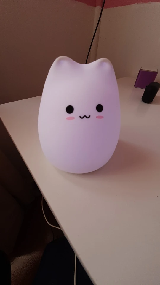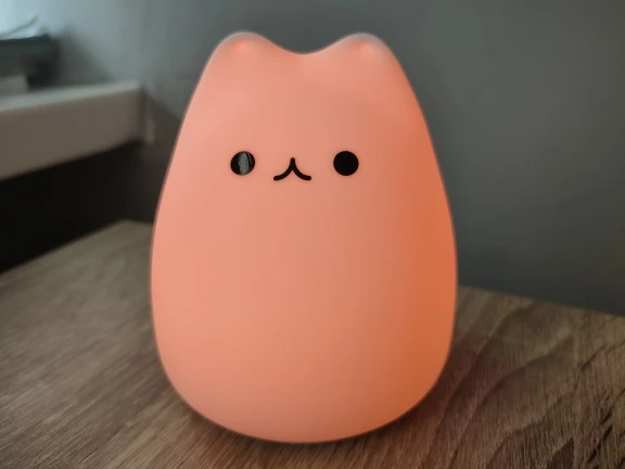 Очень приятный котик по размеру, текстуре, свету. Мягкий. Также понравился тот факт, что имеет таймер. Включаешь- Работает ±2 часа и отключается. По логике он выключается тогда, когда ты уже спишь. Просыпаешься - и не нужно думать о том, что батарейки быстро закончатся