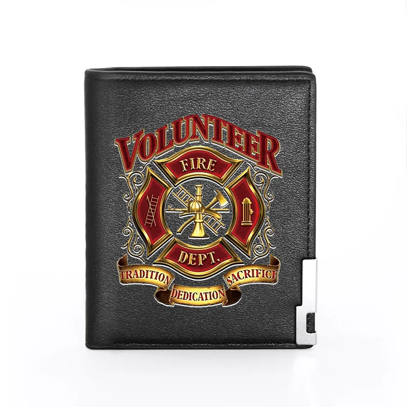 Высококачественный волонтерский пожарный черный кожаный бумажник с принтом, модный пожарный отдел для мужчин и женщин, держатель для кредитных карт, короткий кошелек