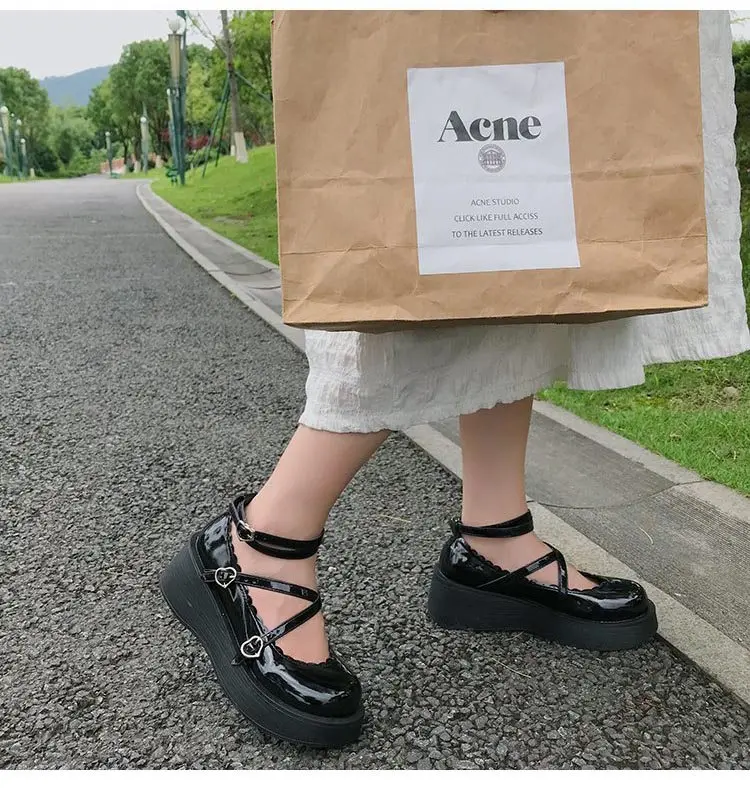 Туфли-оксфорды женские на платформе, каблук, Лолита, милые школьные...