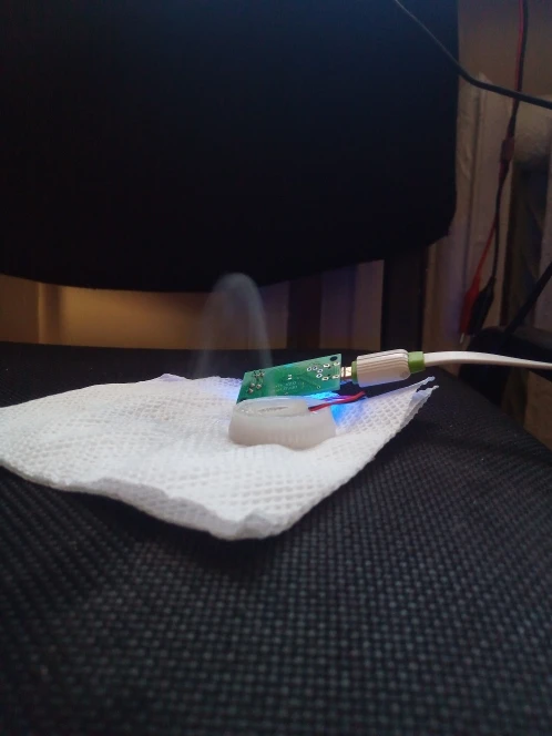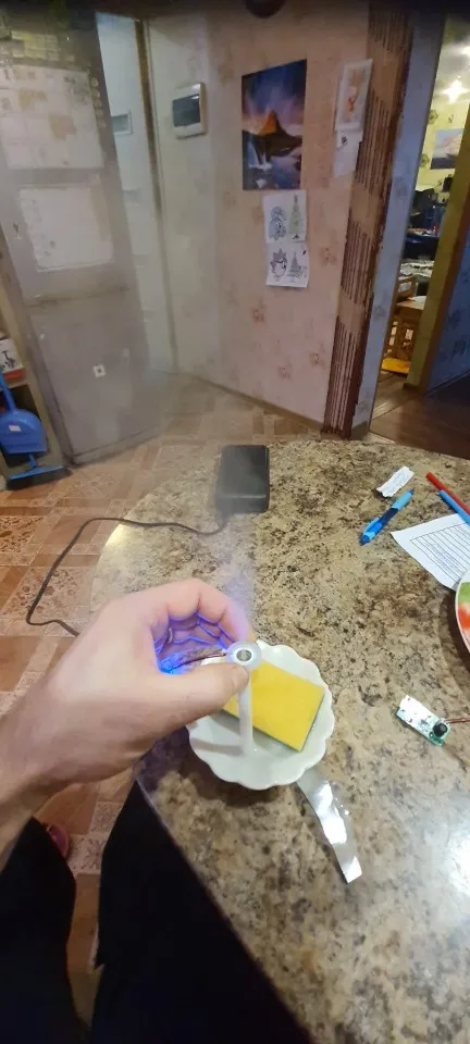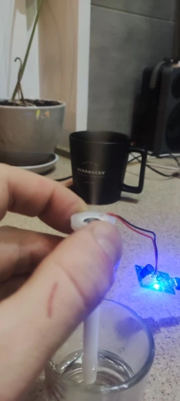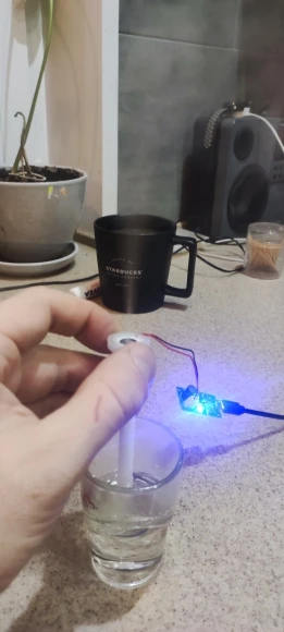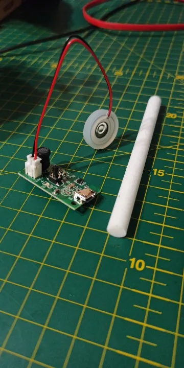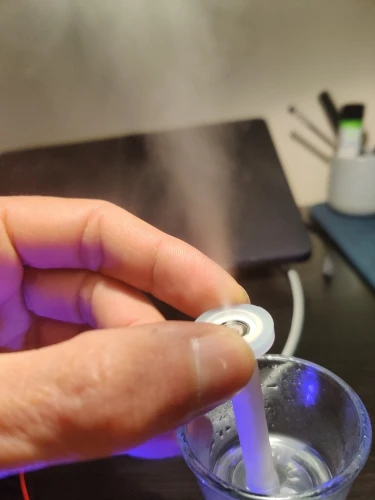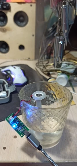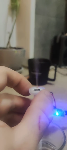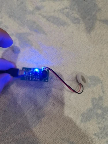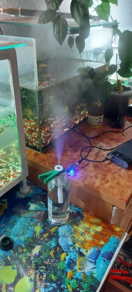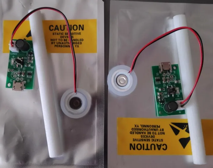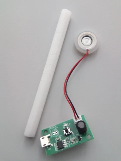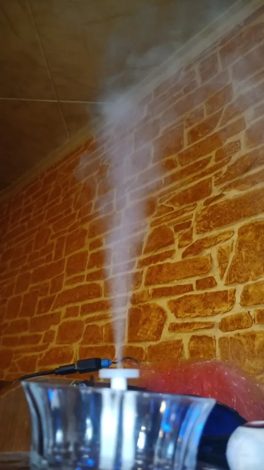 Работает!!! Очуметь! От зарядки телефона с микроUSB вода только фонтаном разлетается, для тумана надо дозировать строго, чтобы слой воды на излучателе был стабильным. А так зверь!