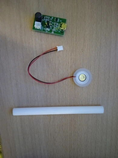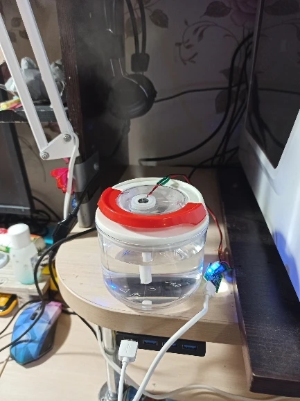 Отличная игрушка :) замечательно работает, довольно мощная струя холодного ультразвукового пара. Огромная благодарность одному из комментаторов, предложившему вариант установки в бутылку со спортивным соском -- встала идеально. Потребляет, кстати, около 230 мА.