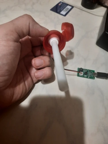 Пробку взял от бутылочки из под воды с соском. Сосок выдавил и развернул. Отверстие идеально подошло для капилляра,а в ободок уплотнителя под горлыко бутылки как родная встала мембрана. Осталось купить длинный капилляр для бутылки 0.5 . Думал как и из чего собрать минут пять. Собрал за минуту. :) Дерзайте!