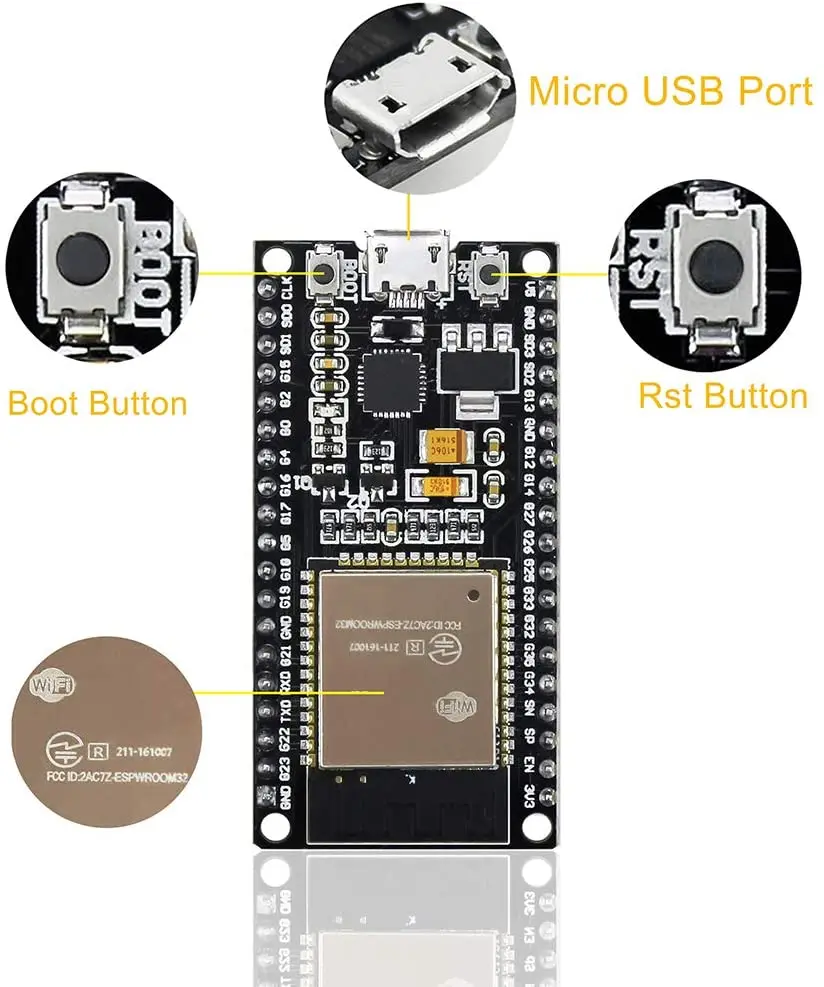 Макетная плата Wi-Fi для ESP32 2,4 ГГц, двухъядерный WLAN WiFi + Bluetooth 38 Pin микроконтроллер + Кабель Micro USB 1 м для Arduino IDE