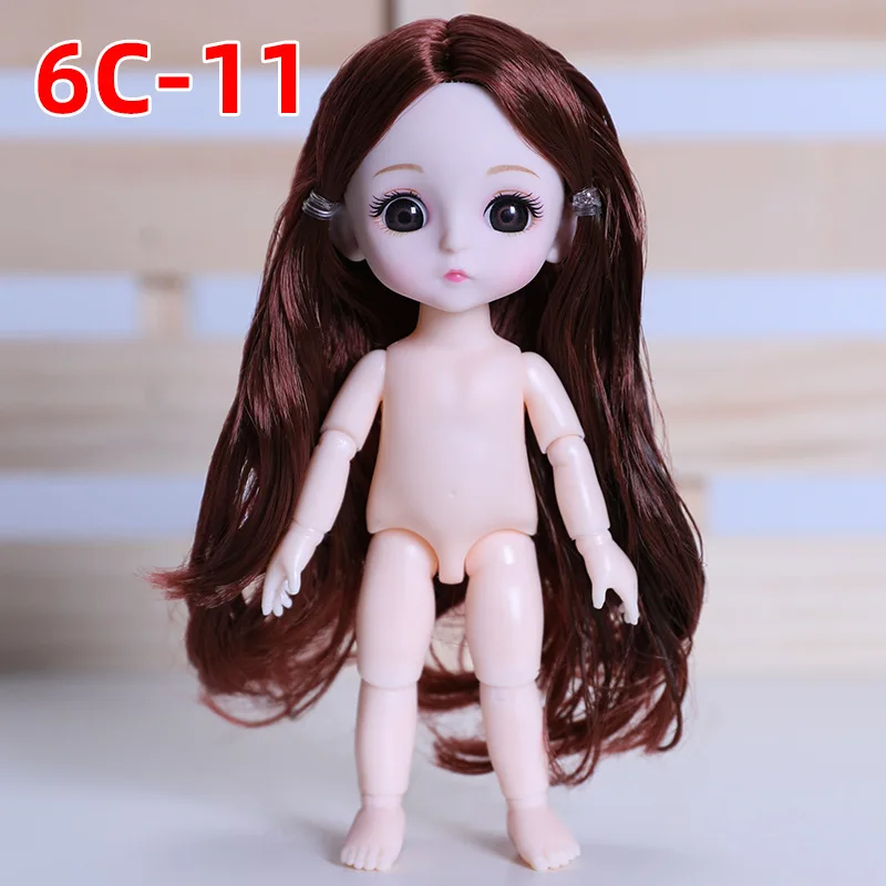 Подвижные шарнирные куклы, миниатюрная голова с длинными волосами, кукла-девочка сделай сам для макияжа, голая Обнаженная кукла ob11, игрушка для девочек, подарок, 16 см, 13