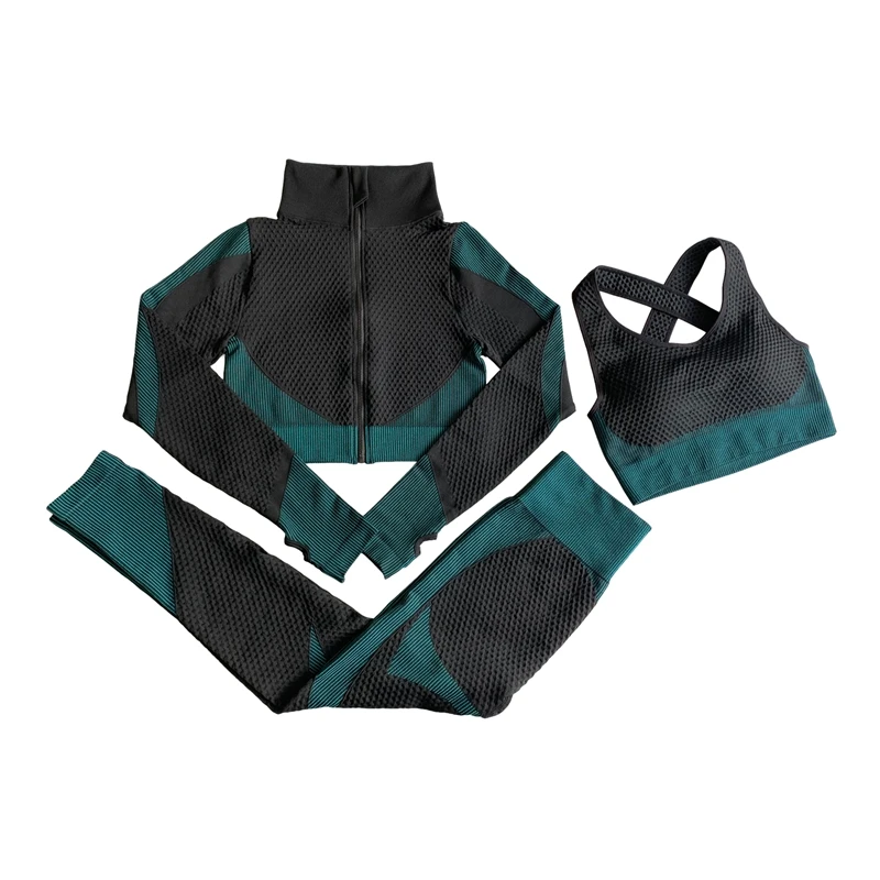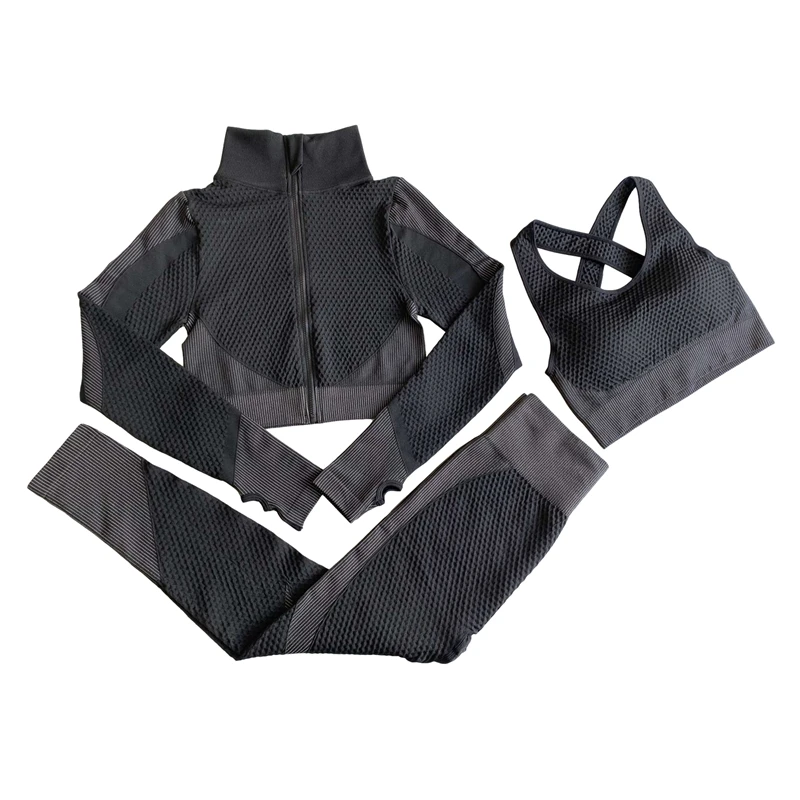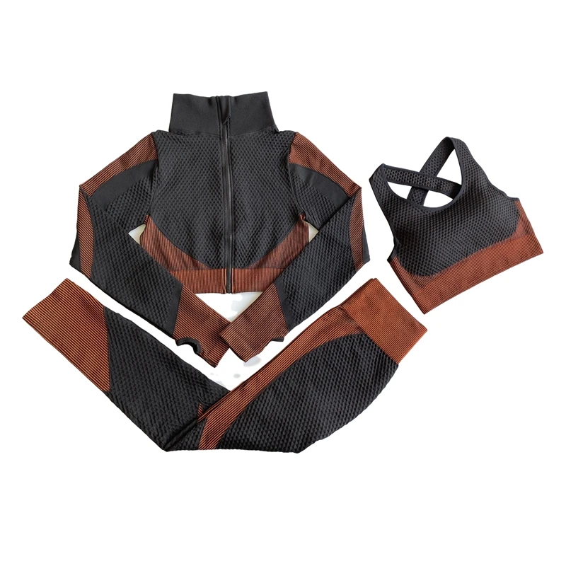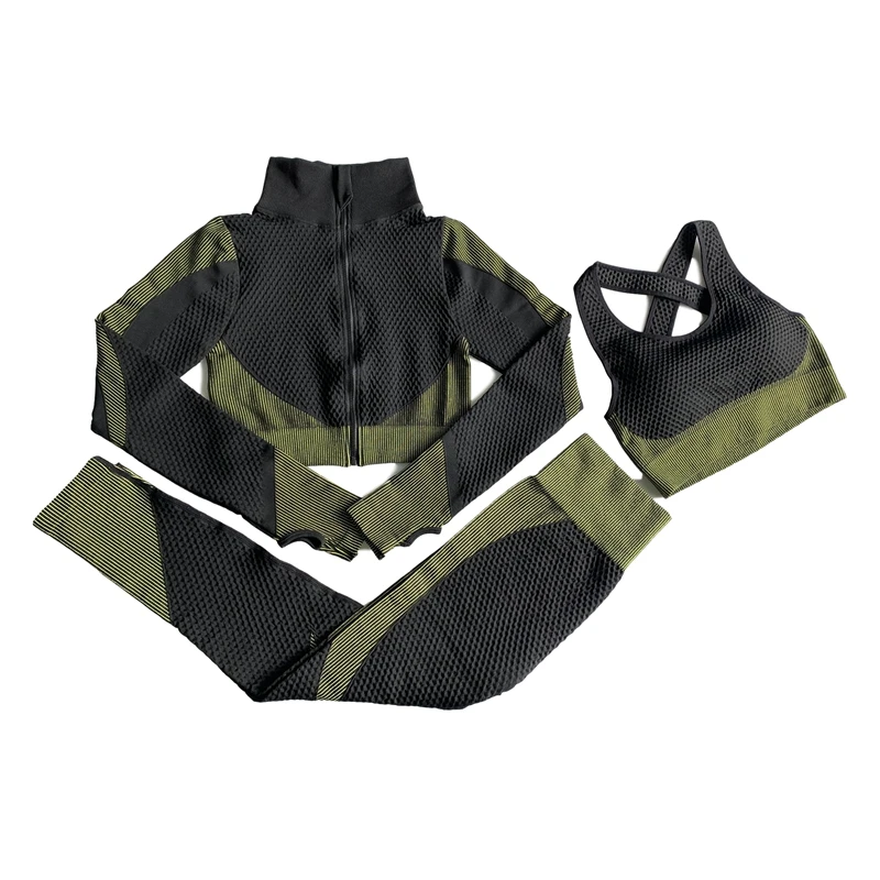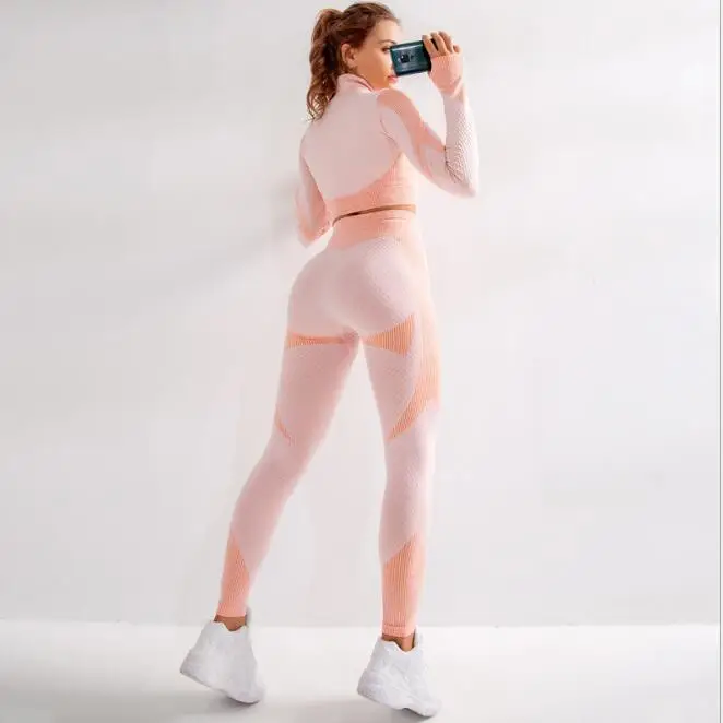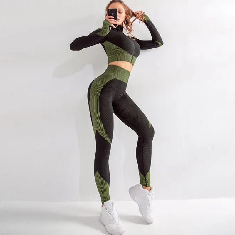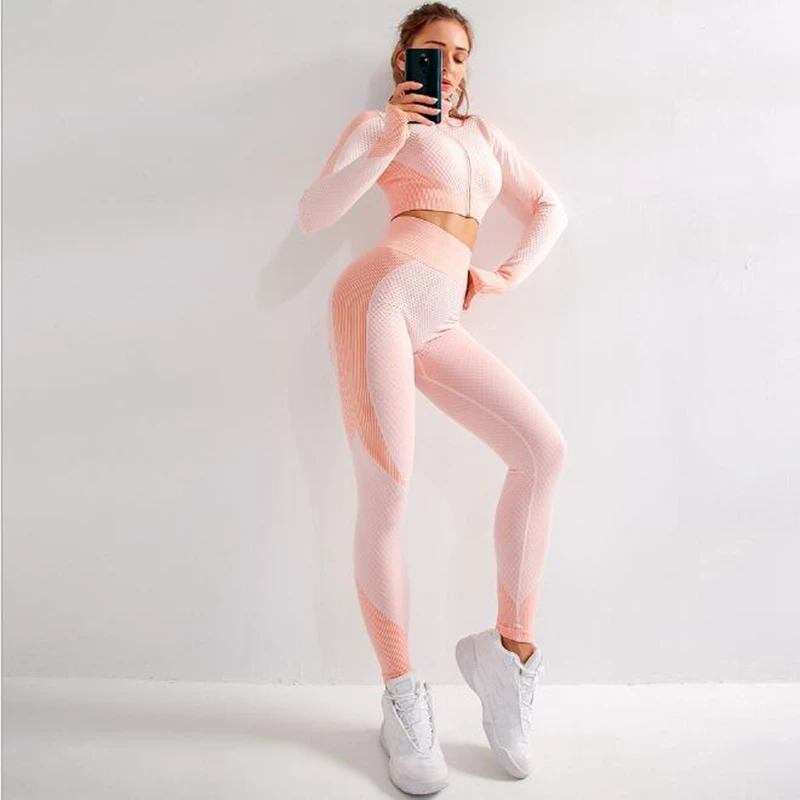 Женские Бесшовные комплекты для йоги, спортивные костюмы для фитнеса, спортивный бюстгальтер с длинными рукавами, рубашки на молнии, леггинсы с высокой талией, спортивная одежда для йоги