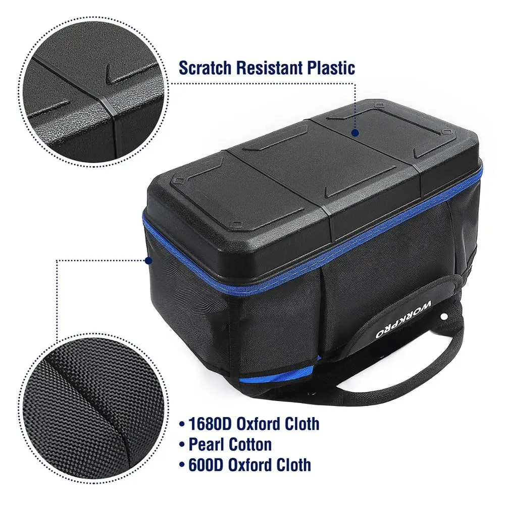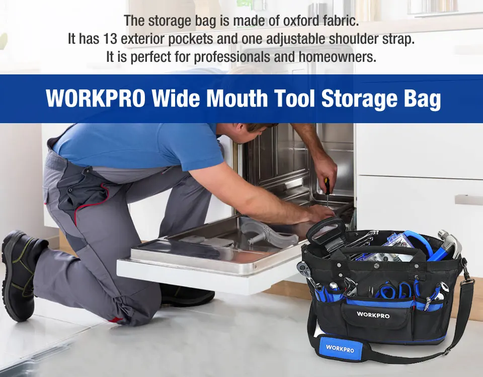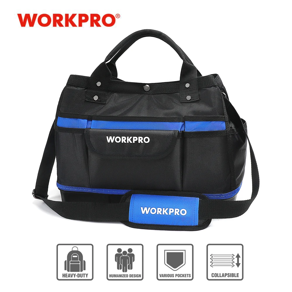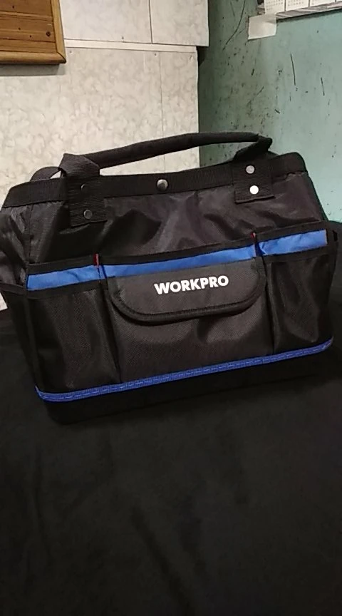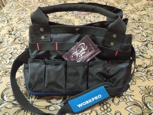 В последнее время мечтал о сумке для инструмента. И вот подвернулся счастливый случай. Выиграл в "ПОЧТИ ДАРОМ" (по-русски ХАЛЯВА) эту сумку WORKPRO. Сделано добротно. Сумка вместительная. Материал прочный, водонепроницаемый. Прошито надёжно. Ручки на заклёпках. Думаю, прослужит долго. Дно-пластик. Спереди 6 карманов. Сзади-5. По бокам тоже карманы. Внутри карманов нет. Сверху закрывается на одну кнопку, молний нет. Это моя первая халява. Играю довольно давно. И вот уже разуверившись, что можно что-то выиграть, вдруг- удача! Я очень доволен. Спасибо всем!
