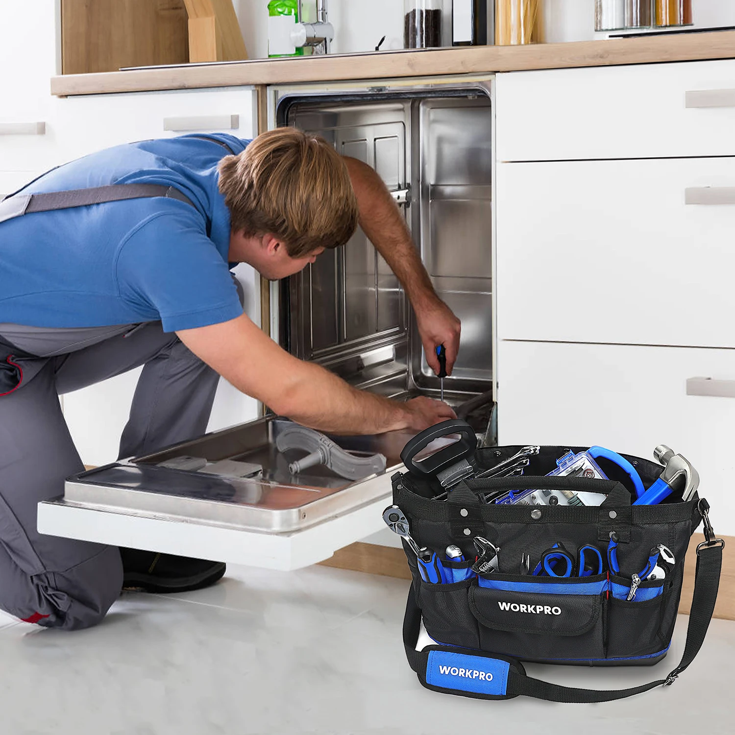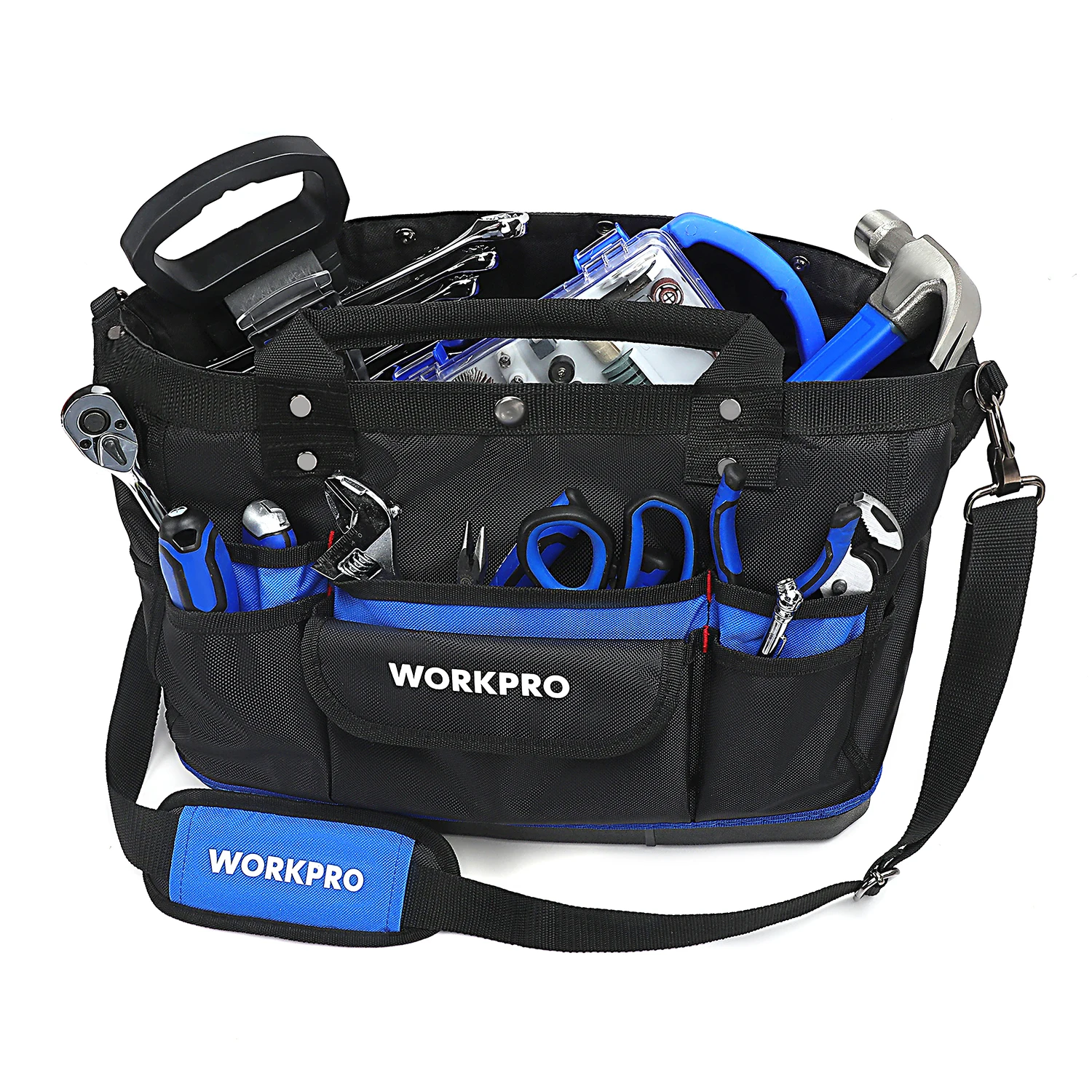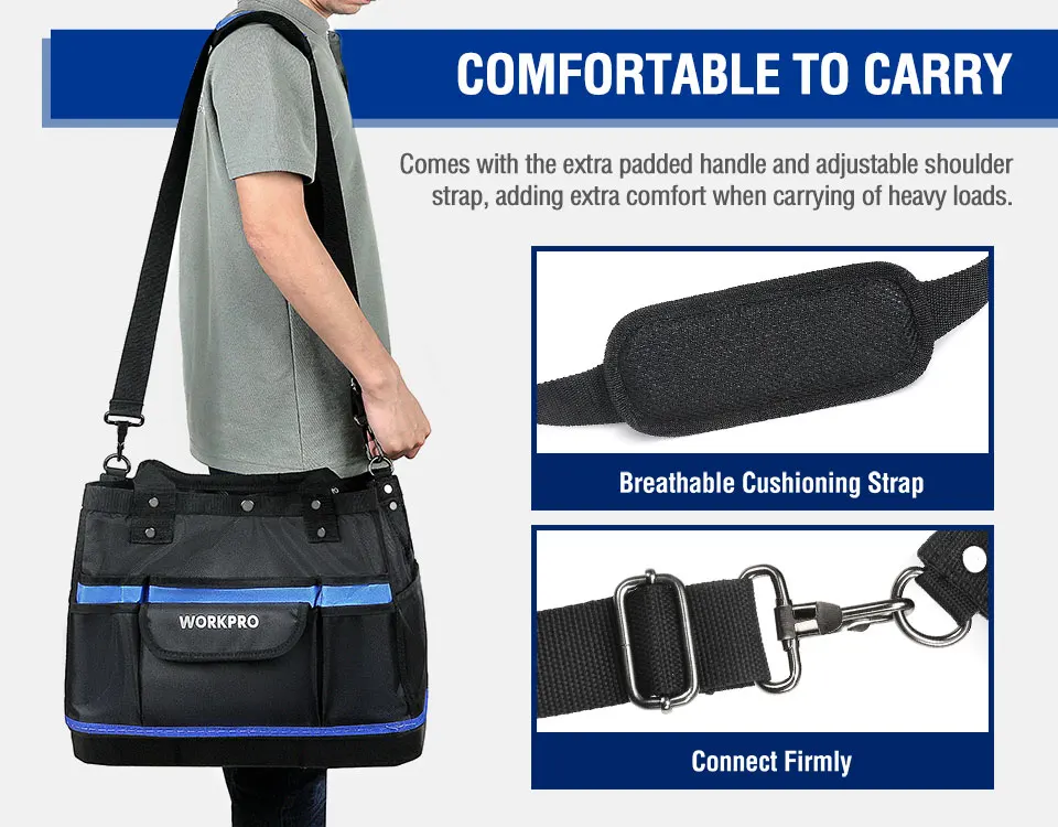 В последнее время мечтал о сумке для инструмента. И вот подвернулся счастливый случай. Выиграл в "ПОЧТИ ДАРОМ" (по-русски ХАЛЯВА) эту сумку WORKPRO. Сделано добротно. Сумка вместительная. Материал прочный, водонепроницаемый. Прошито надёжно. Ручки на заклёпках. Думаю, прослужит долго. Дно-пластик. Спереди 6 карманов. Сзади-5. По бокам тоже карманы. Внутри карманов нет. Сверху закрывается на одну кнопку, молний нет. Это моя первая халява. Играю довольно давно. И вот уже разуверившись, что можно что-то выиграть, вдруг- удача! Я очень доволен. Спасибо всем!