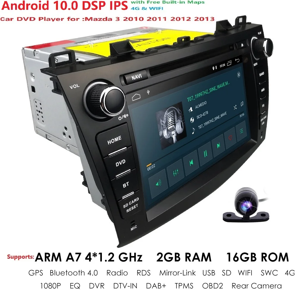DSP 8 "2 DIN Автомобильный GPS-навигатор DVD стерео плеер Android 10,0 для Mazda3 2010-2013 WIFI видеовыход Разделенный экран встроенная карта