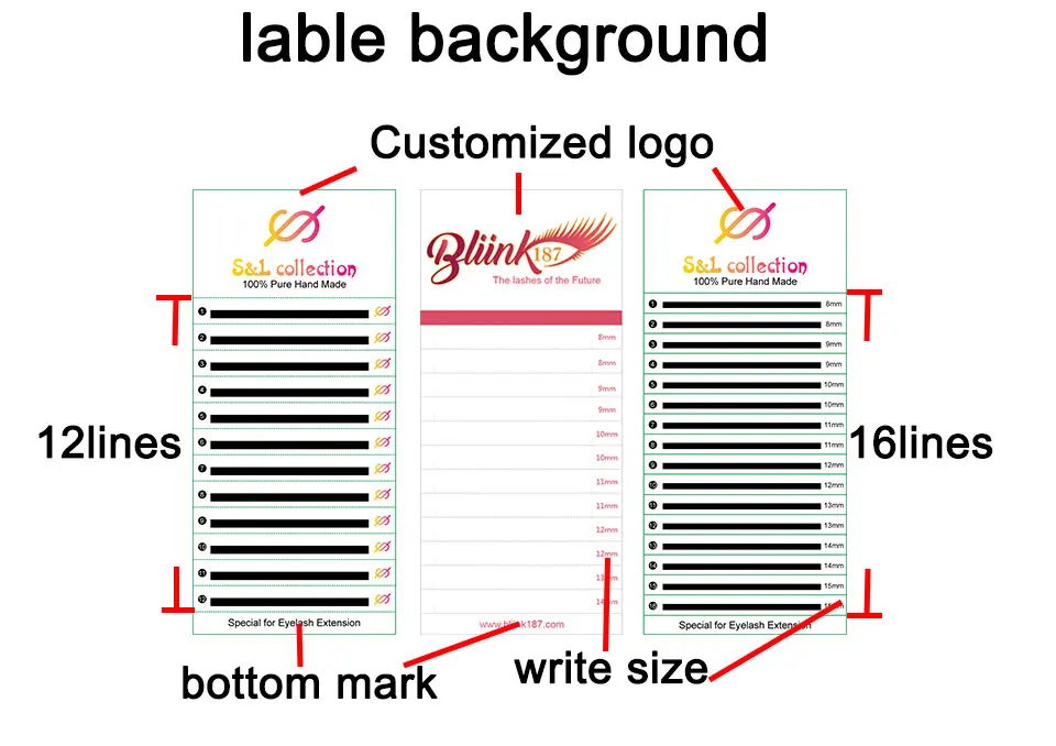 Более 50 лотков: бесплатный логотип или логотип Купите 50-100 коробок: бесплатный логотип stiker Купите более 100 коробок: Бесплатные пользовательские карты с логотипом 2. Свяжитесь с нами по оптовой цене и сообщите нам, что вам нужны логотип stikers или lable карты (мы не даем этот подарок кому-то не свяжитесь с нами, а только делаем заказы) Все лотки 3. Пожалуйста, отправьте свой логотип на мою электронную почту: echo@superwintrading.com и сообщите нам, какой размер вы хотите Whatsapp: + 86 17753206720 + 86 18724761657 4. Акция включает в себя все лотки в вашем заказе, вы можете сделать смешанный размер на один заказ 5. Все пользовательские логотипы с белым клеем 6. Нам нужно сделать несколько дней, чтобы сделать пользовательские наращивание ресниц и логотип карты, поэтому нам нужно около 7-25 дней, чтобы отправить вам все продукты 7. Пожалуйста, обратитесь к изображению ниже:
