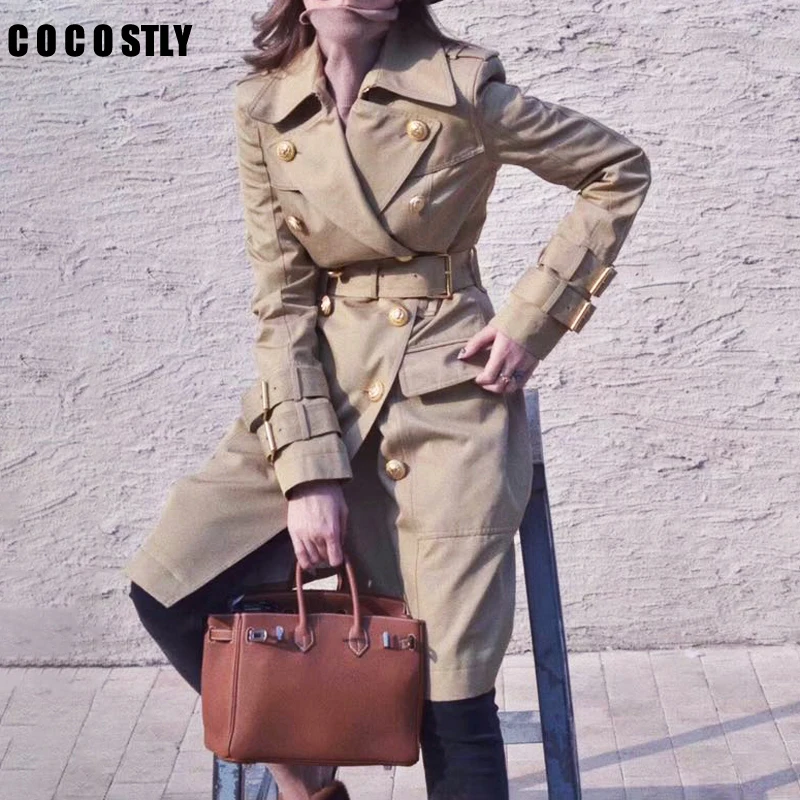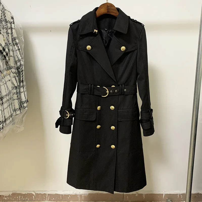 Зимняя одежда, Женское пальто, повседневный двубортный женский простой классический длинный тренчкот, Женская ветровка с поясом